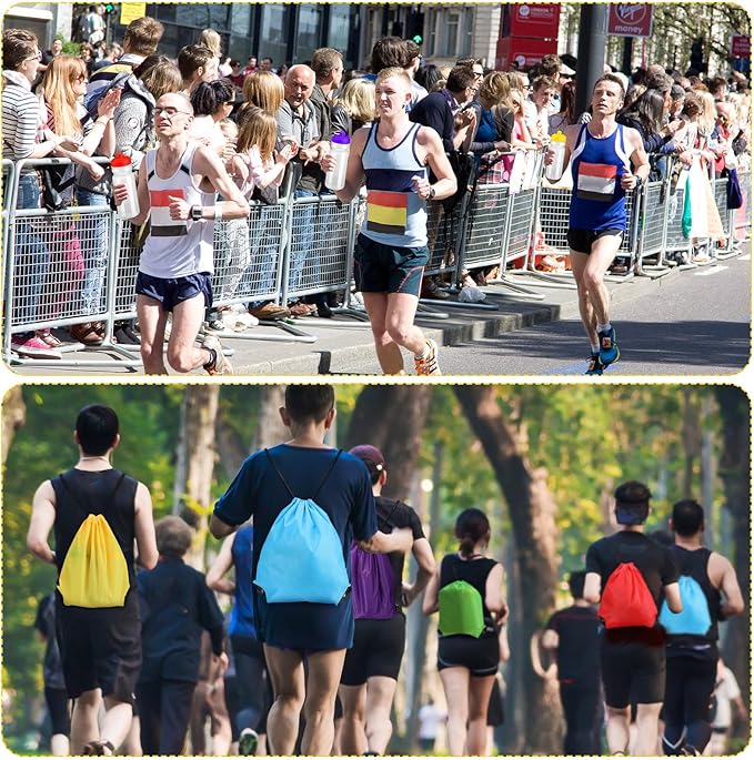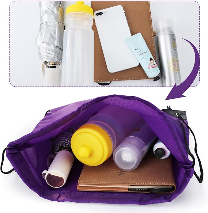 - Enough to Use and Share: the package includes 25 pieces of clear water bottles bulk, coming in clear body and colorful bottle cup lids, dark purple, blue, red, green and yellow, 25 pieces of drawstring backpacks in 5 colors, 5 pieces of each color, enough to meet your daily use and replacement needs, and you can also share them with your family members