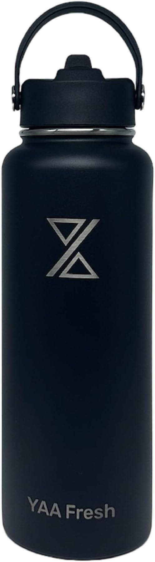 Yaa Fresh 40Oz BPA-Free 24 Hr Cold/12 Hr Hot Insulated Stainless Steel Sports Water Bottle with Straw and Lid, Food-grade Double Walled, Leakproof, Insulated Thermos, Wide Mouth for Men, Women & Kids
