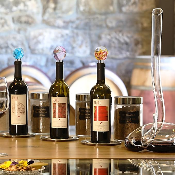 2PCS Hand Blown Glass Wine Stopper Bottle Stopper - Wine Saver, Reusable Wine Corks for Beverage, Stainless Steel Wine Stopper