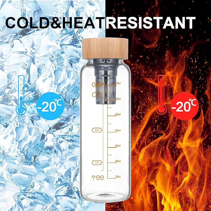 - Stay Hydrated: Our 29oz borosilicate glass water bottle reminds you to stay hydrated throughout the day. Crafted from high-quality materials, it delivers a pure taste, keeping you refreshed and energized!