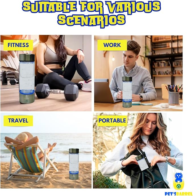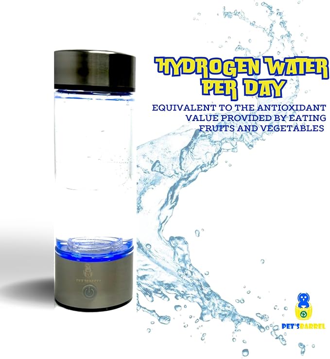 PET'SBARREL Hydrogen Water Bottle - Rapid 3-min Electrolysis Hydro Water Ionizer. Hydro water bottle. Water hydrogenator. Hydrohealth water bottle. Healthy hydration hydrogen water bottle generator