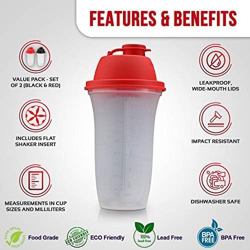 SIGNORA WARE Shaker Bottles | 17-Ounce Plastic Protein Shake Bottle for Meal Replacement Shakes & Smoothies, Beverages, Mixing Salad Dressing & Sauces, Margarita, & More
