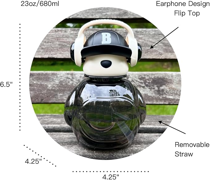 - š§ Flip Top and bear earphone design make it fun for drink. The straw inside the bottle can be disconnected from the lid, which makes it easy to clean.
