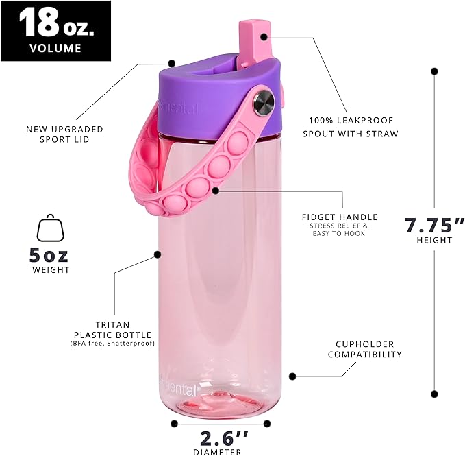 - š¦šššæš±š šš»š± šššæš®šÆš¹š² š§šæš¶šš®š» š£š¹š®ššš¶š° šš¶š± šš¼ššš¹š²š: Crafted from superior food-grade, BPA-free, shatterproof Tritan material, our Splash Pop 18oz water bottle for kids is resistant to scratches, odors, and stains.
