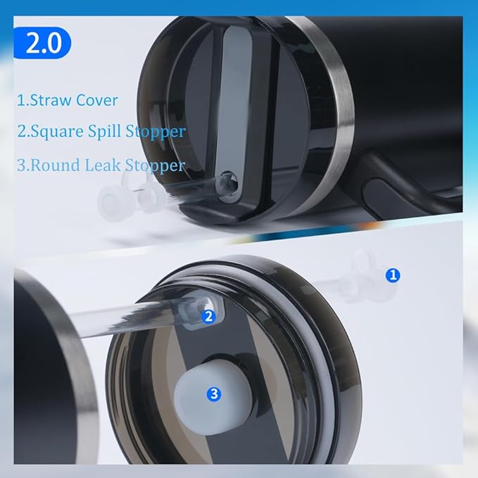 - 【Modern minimalist design】These straw toppers are not only stylish, but practical too. The straw tip cover cap prevents water from spilling out of the straw, round leak proof plug installed in the middle of the inside of the lid for sealing & square spill stopper seal installed in the straw hole of the lid, These three kits ensure the tightness of the water cup, and can effectively prevent debris and dust from entering the water cup, making drinking water easy and healthy.
