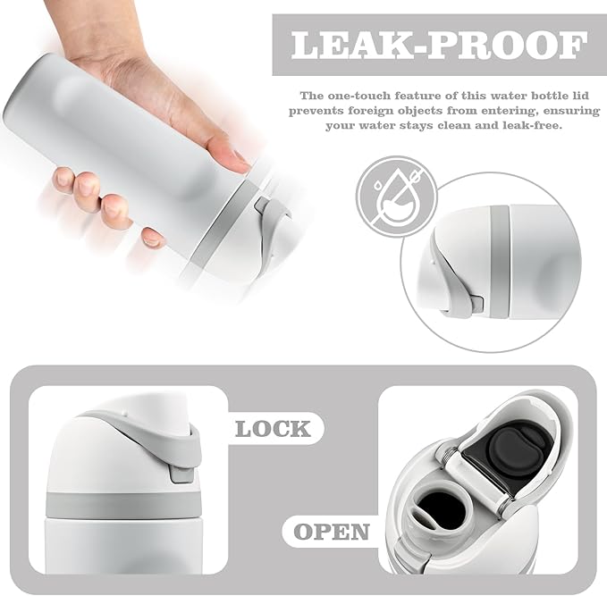 - Easy to Drink: The one-touch water bottle lid, Twist the cap which allows you to drink without removing the lid and seal beverage with confidence, prevents foreign objects from entering the water bottle, keeps the water clean and does not leak.