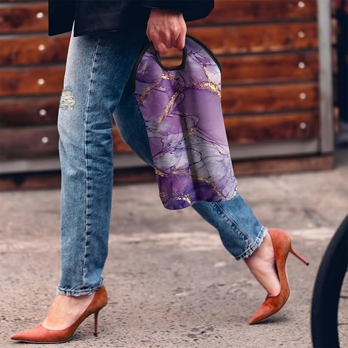 doginthehole Purple Marble Wine Bottle Bags for 2 Wine Bottles, Water Bottle Holder Neoprene Wine Carrier Tote Bag with Handle for Wedding, Birthday, and Dinner Party Festival Favors