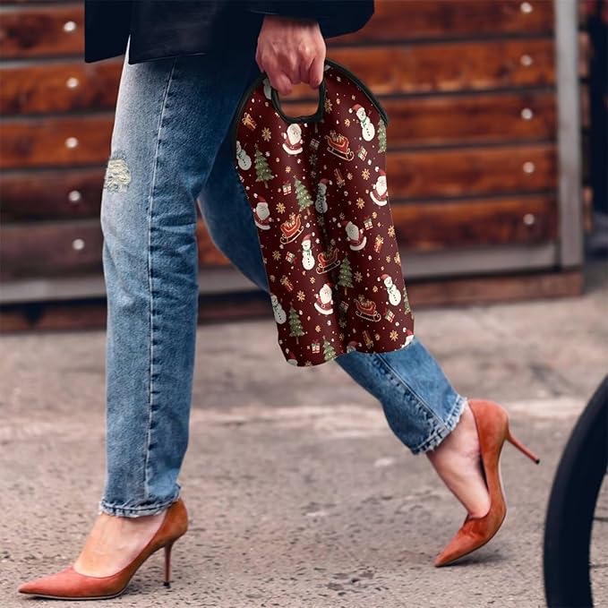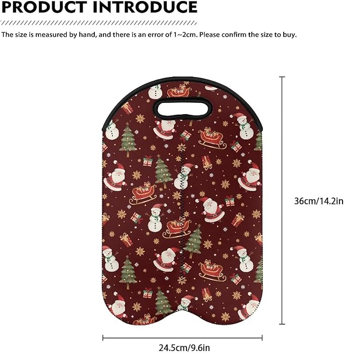 doginthehole Christmas Decorations Wine Tote Bag 2 Bottles Cute Santa Claus Wine Carrier Tote Bag for Travel Party Beach Wedding Reusable & Recyclable Champagne/Beer/Water Bottle Holders