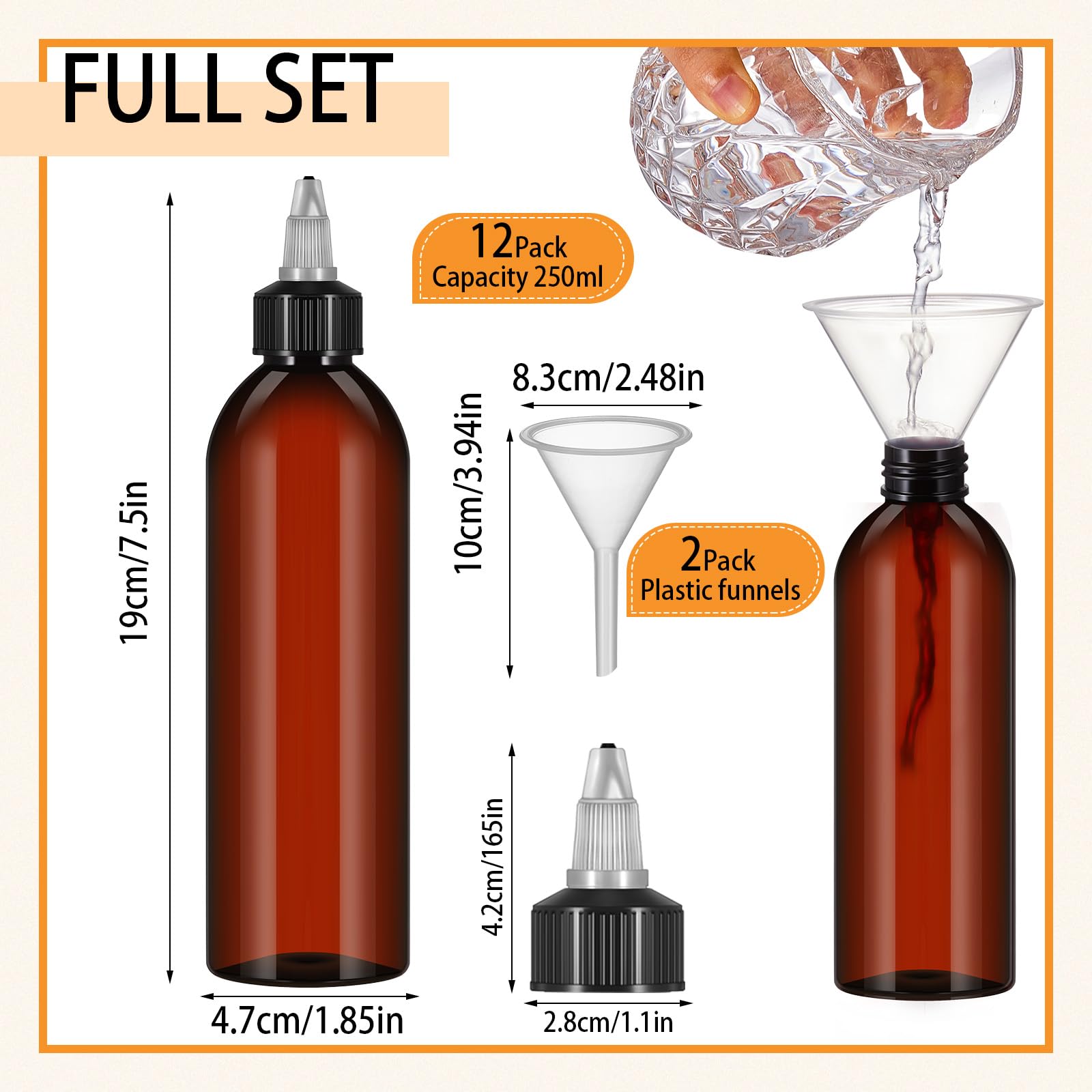 - Sufficient to Apply: the package comes with 12 pieces of 8 oz oil bottles for hair with 2 plastic funnels, sufficient quantity can meet your daily use and replacement needs, and you can also share them with your family members, friends, neighbors and so on