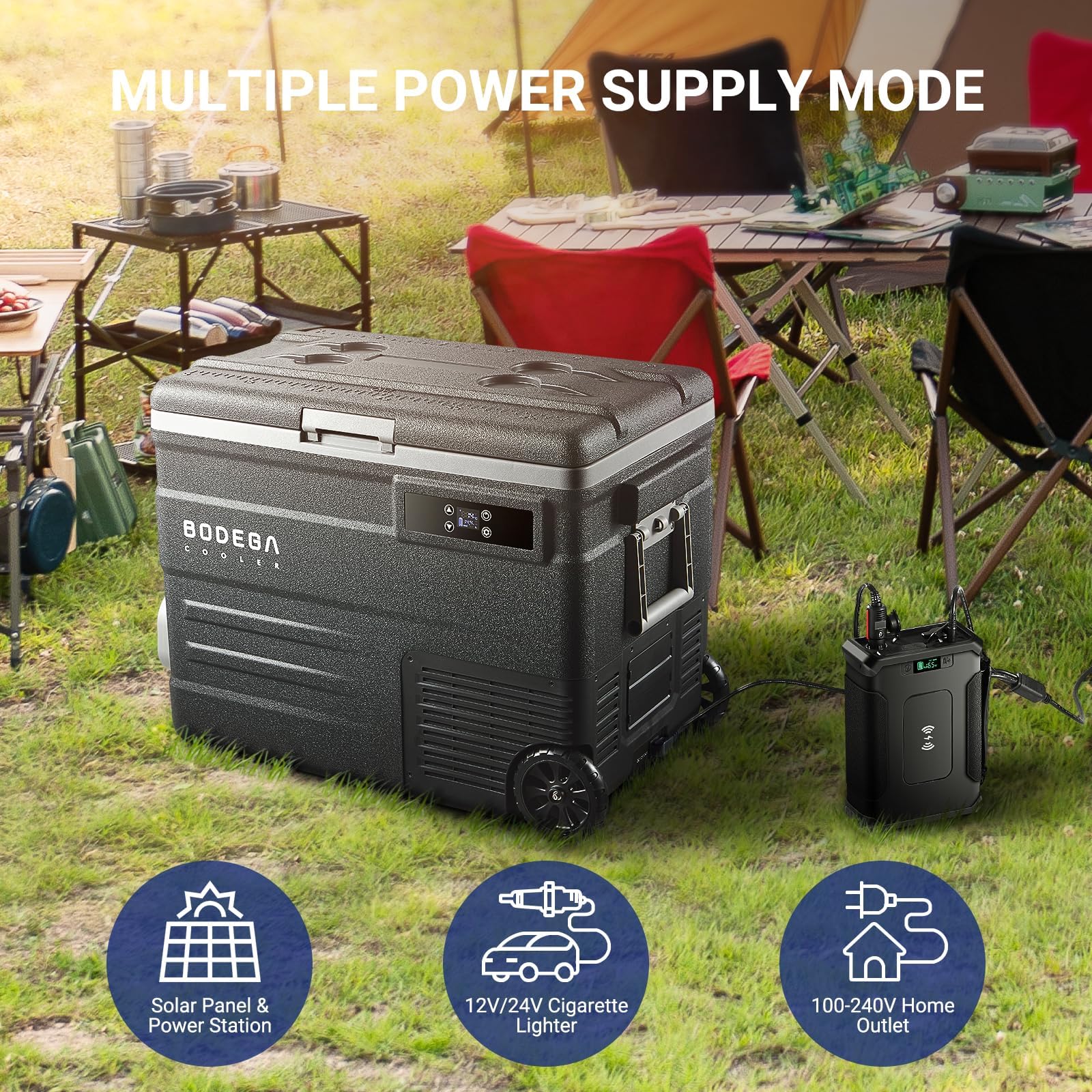 - 【55L Large Capacity】BODEGACOOLER 12v car refrigerator has a 55L large capacity,you can cool drinks,seafood,snacks,meat,beverages,etc at the same time.This single zone car refrigerator is best choice for camping,party,boating,fishing,outdoor and travel and fully meets RV or truck drivers,boat owners and campers needs.