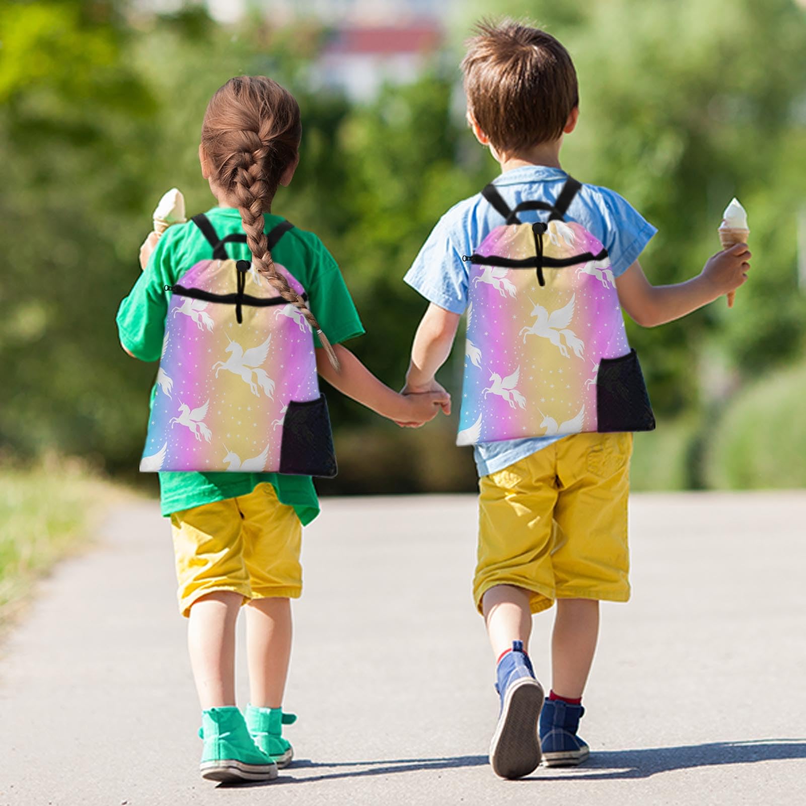 - Beautiful Appearance: Using advanced printing technology. The Unicorn Starry Rainbow pattern is clear and does not fade, and the pink unicorn makes this drawstring bag more charming. Children will adore its charming design