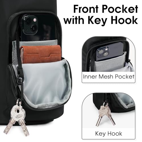 - Multiple Pockets: This water bottle bag features a large front zippered pocket with a key leash inside for easy key attachment. It also includes a mesh pocket inside, allowing for convenient compartmentalization. ideal for storing essentials such as glasses, phones, wallets, or any items you need quick access to.