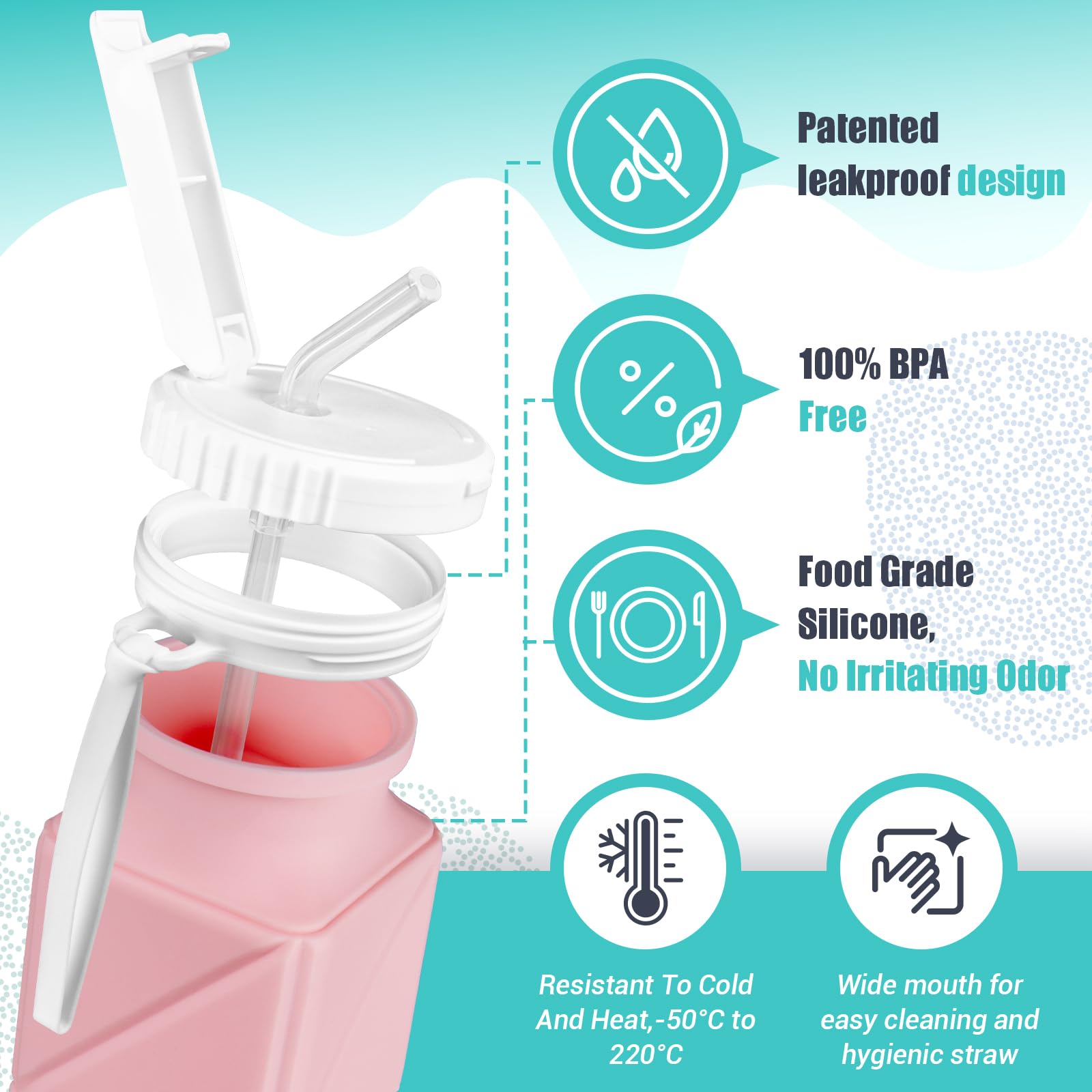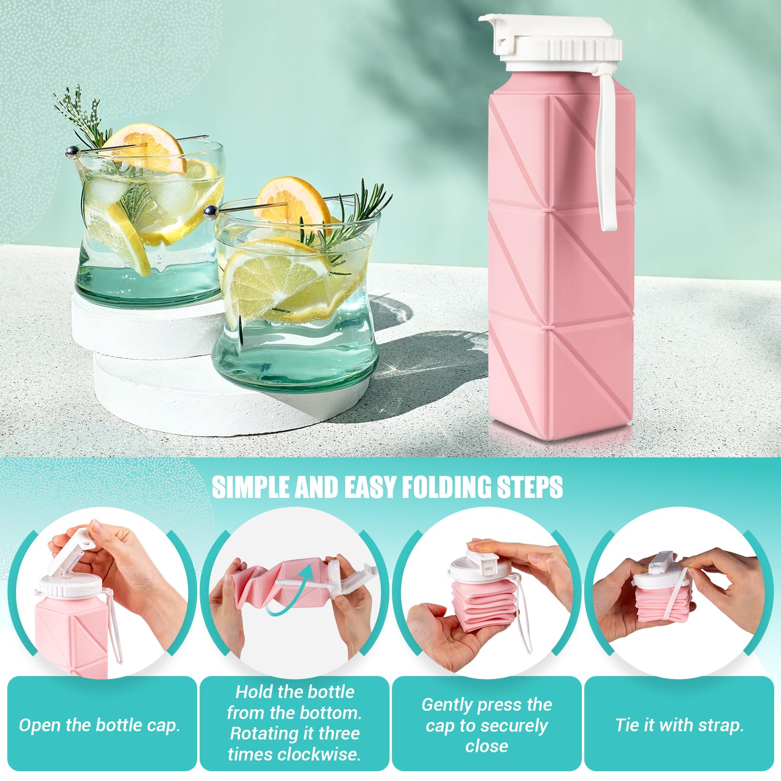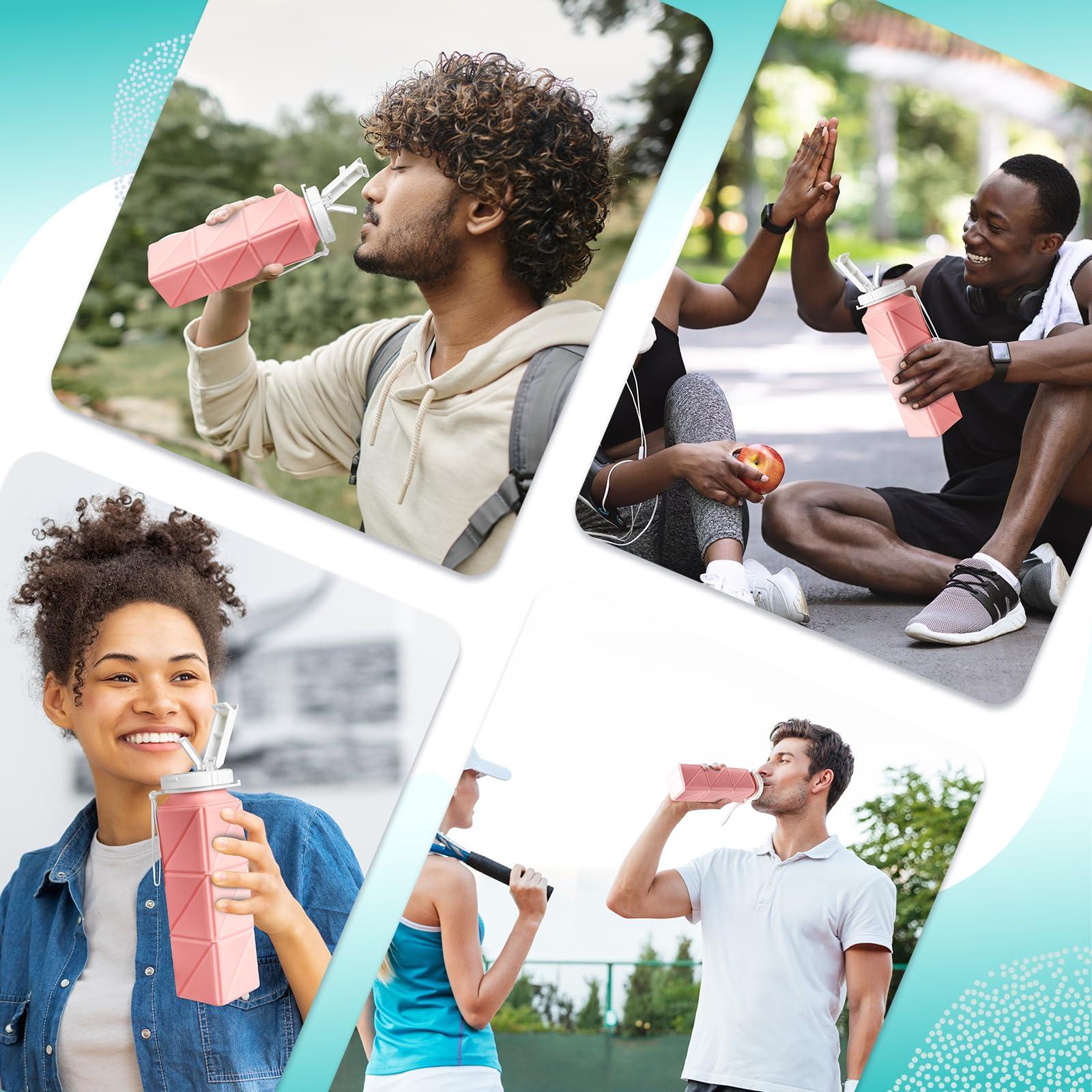 - HIGHLY PORTABLE AND COLLAPSIBLE: Our collapsible water bottles are made of food-grade silicone, with an extensively tested double leak-proof design, collapsible water bottles are great for traveling and outdoor sports, as well as daily drinking water, these collapsible silicone water bottles a thoughtful companion to your travels. Lightweight and portable, you can enjoy a smooth drinking experience anytime and anywhere.