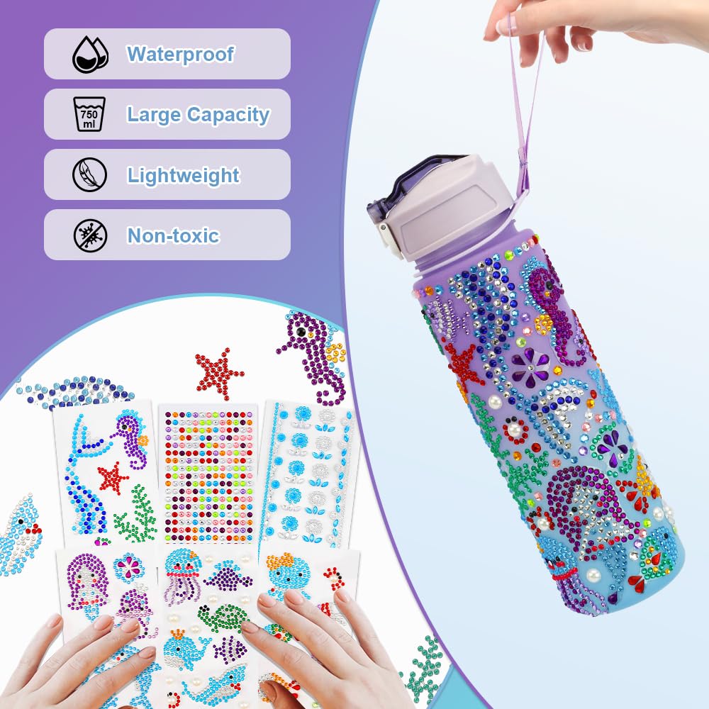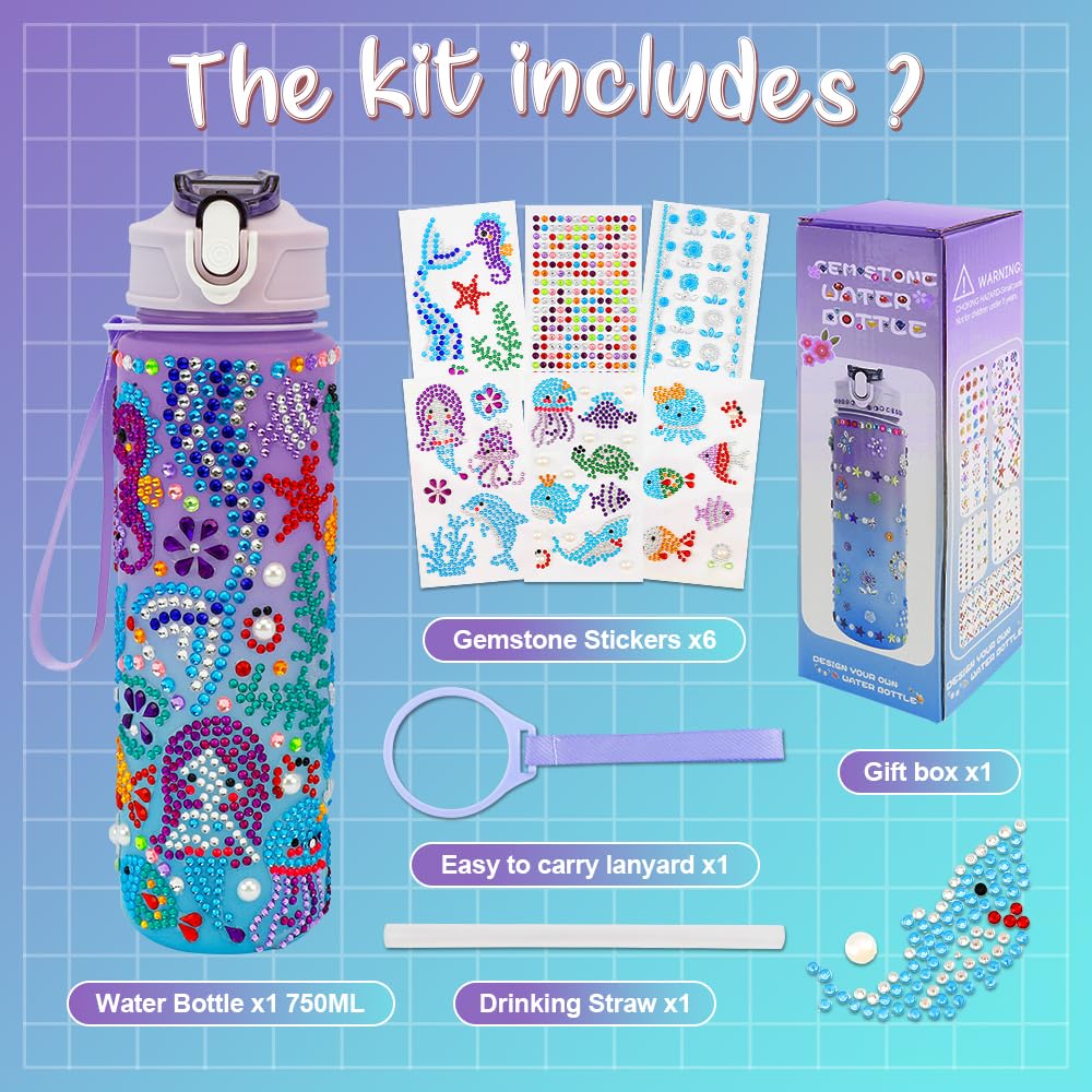 - DIY Craft Kits: Our fun DIY arts and crafts kits include a 700 ml water bottle x1, an easy-to-carry lanyard x1, a drinking straw x1, a beautiful gift box x1, and colorful gemstone stickers x6.