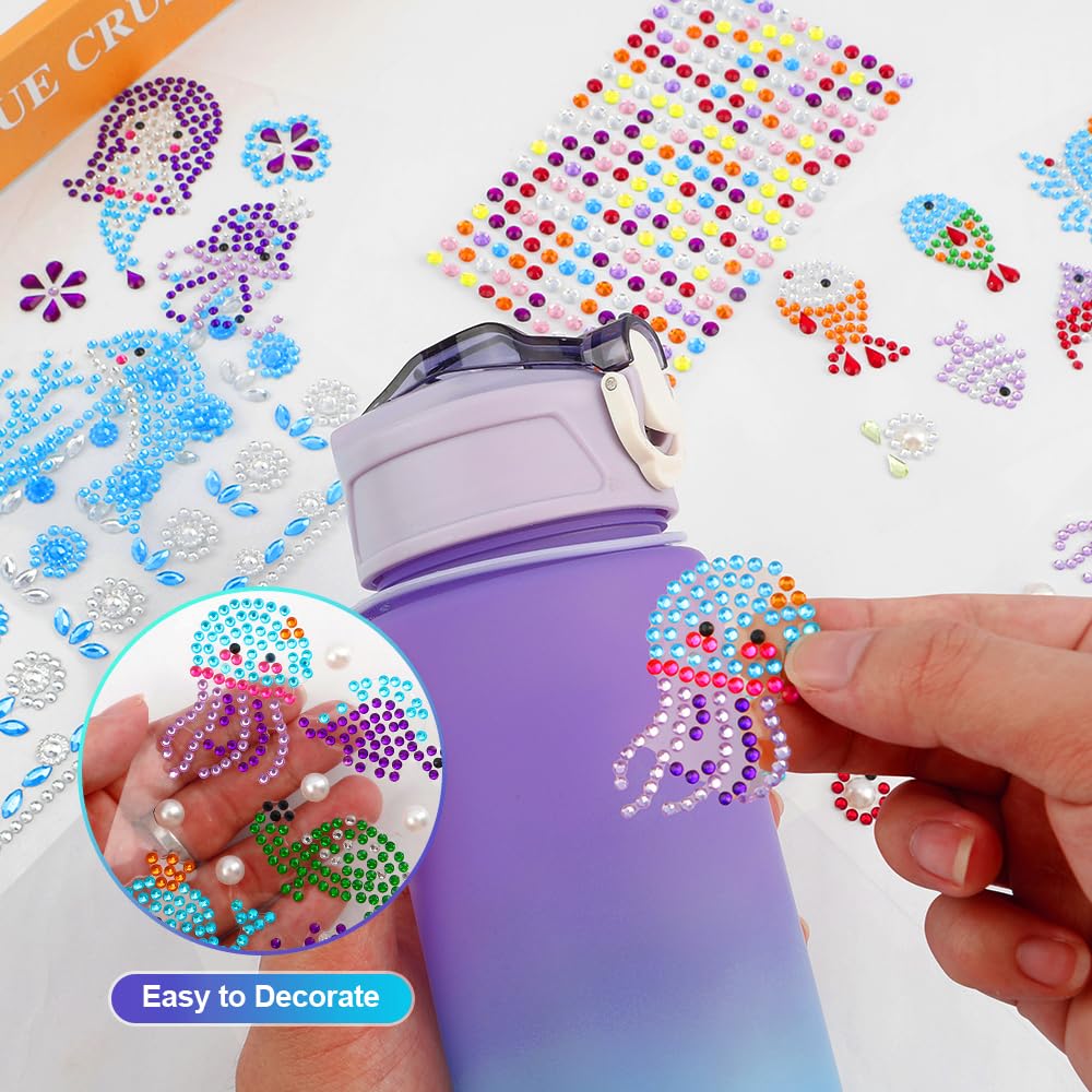 - Decorate Your Own Water Bottle: our water bottle features gradient colors and a unique design with ocean-themed mermaid gemstone sticker diamonds, girls can use these gemstone stickers to decorate personalized water bottles, it's fun for kids, and it can also cultivate their creativity and hands-on skills.