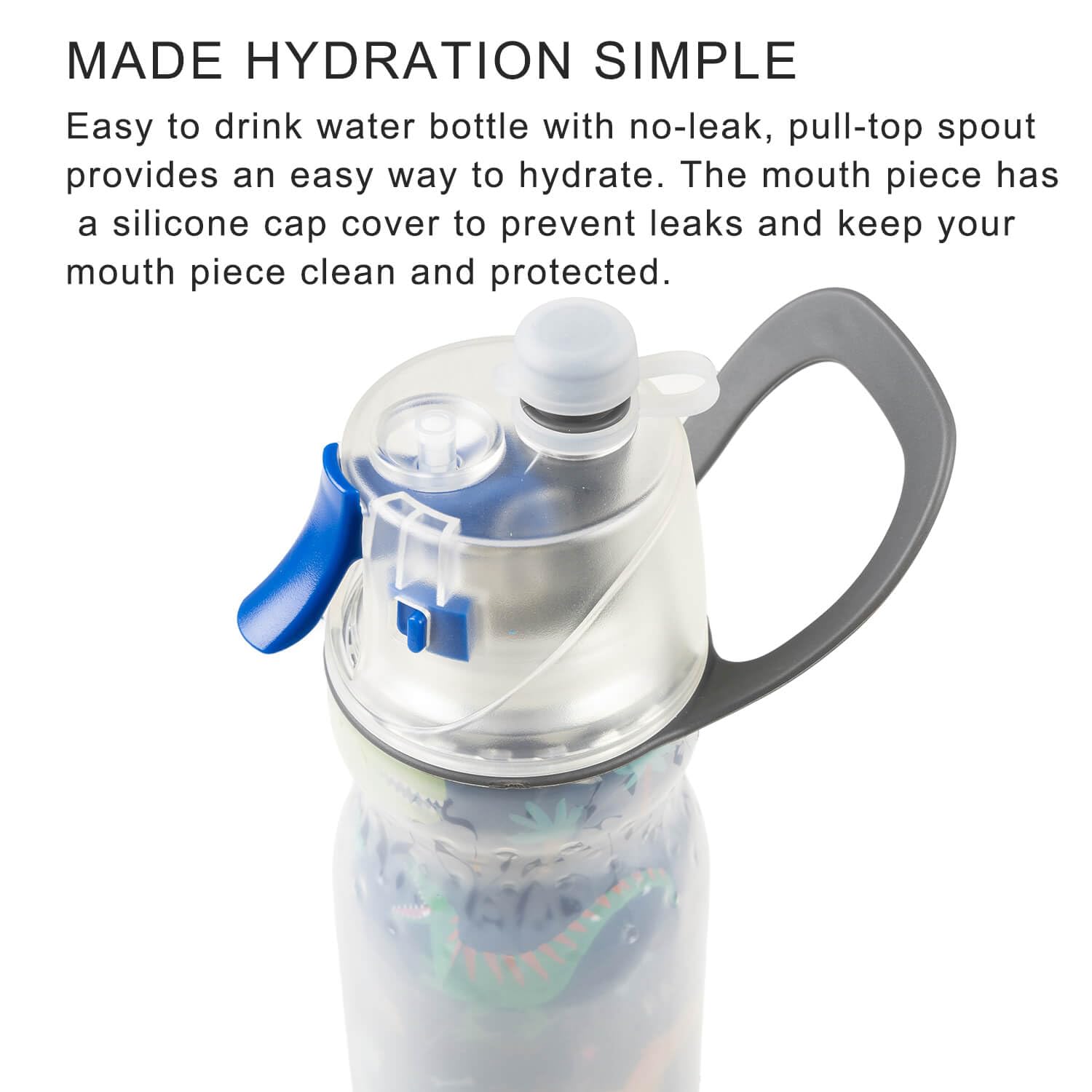 - Nature Outflow, Drink More Easy: These cute water bottles for boys girls have 2 straws inside, the small straw is for the built in mister, and the big straw is for air flow to allow the water to pour faster and easier. Please pull up on the silicone nipple to drink, then push it back down when done. It is spill proof when the silicone nipple is down.