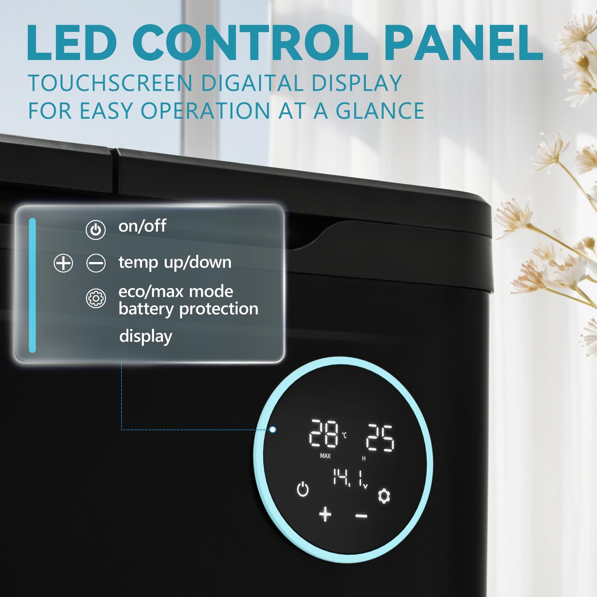 - Dual Zone & LED Panel: The portable refrigerator has two storage areas, which can effectively reduce odor. The two storage areas can control the temperature separately to meet your storage needs of different foods. The car freezer has a capacity of 48 quarts, which is convenient for storing and accessing all food. This 12v fridge comes with a simple LED control panel for easy dual-zone temperature adjustment.