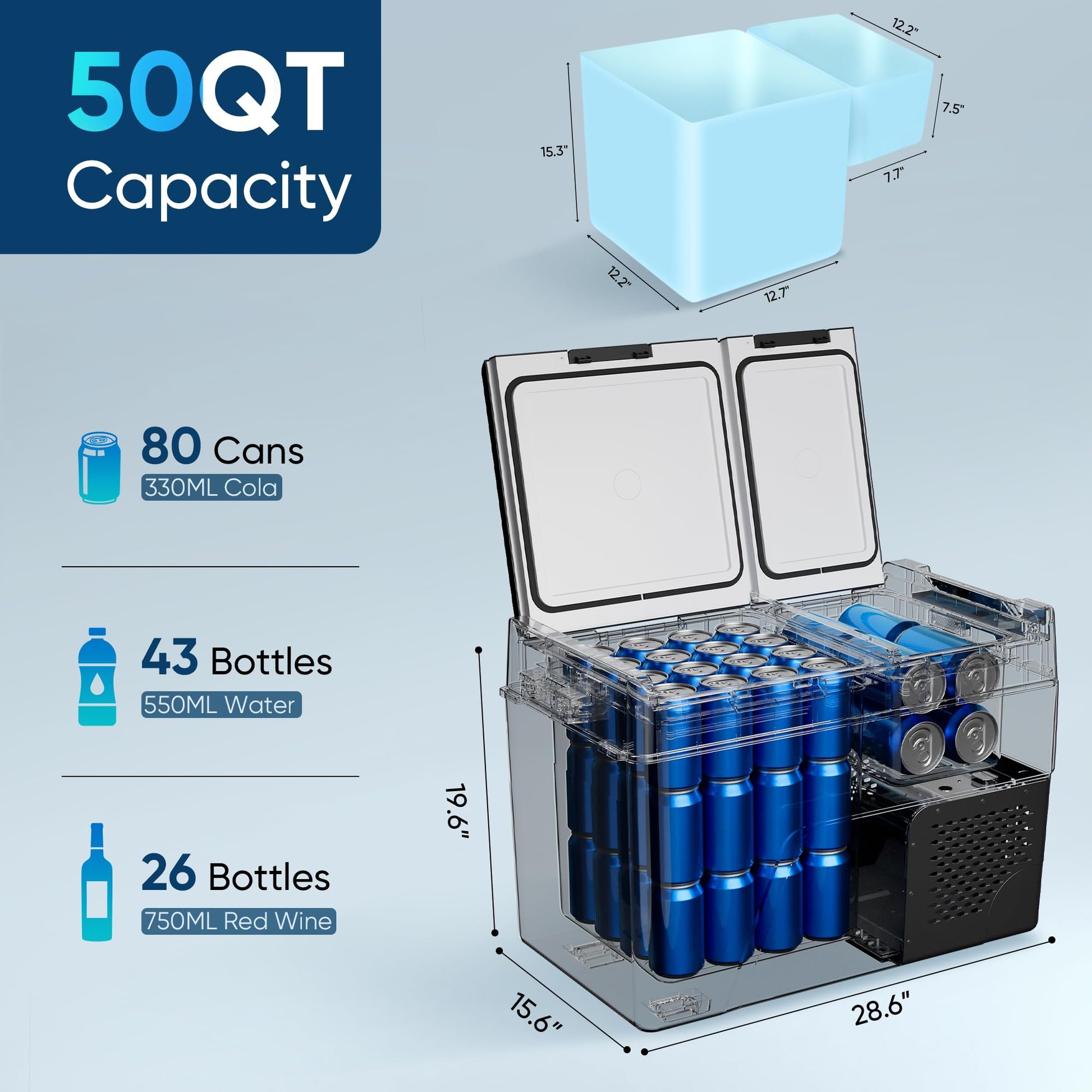 - Dual-Zone Independent Control: This 12 volt refrigerator has 2 zones with separate temp control (-4°F to 68°F), preventing odor mixing and keeping food fresh. Easy-to-use control panel adjusts each zone simply. Perfects for truck/RV trips, boating, fishing, party—this electric cooler cools flexibly, meeting all your on-the-go needs, practical and convenient.