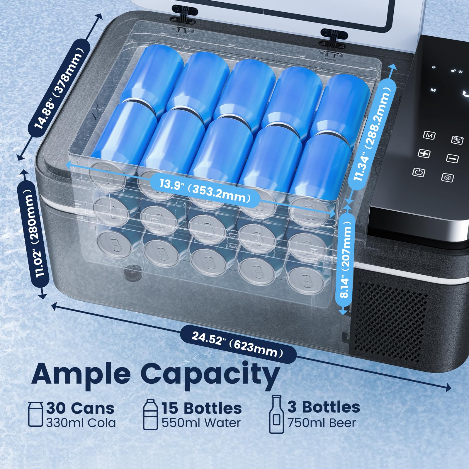 - ❄ [Rapid Cooling] The 22QT car refrigerator has a quick cooling feature that can cool down to -4 degrees Fahrenheit in just 4 hours. After adding 3 liters of water, the mini refrigerator can be frozen within 3 hours and completely frozen within 5 hours. (Note: Keep it at -4 degrees Fahrenheit until thawed.)