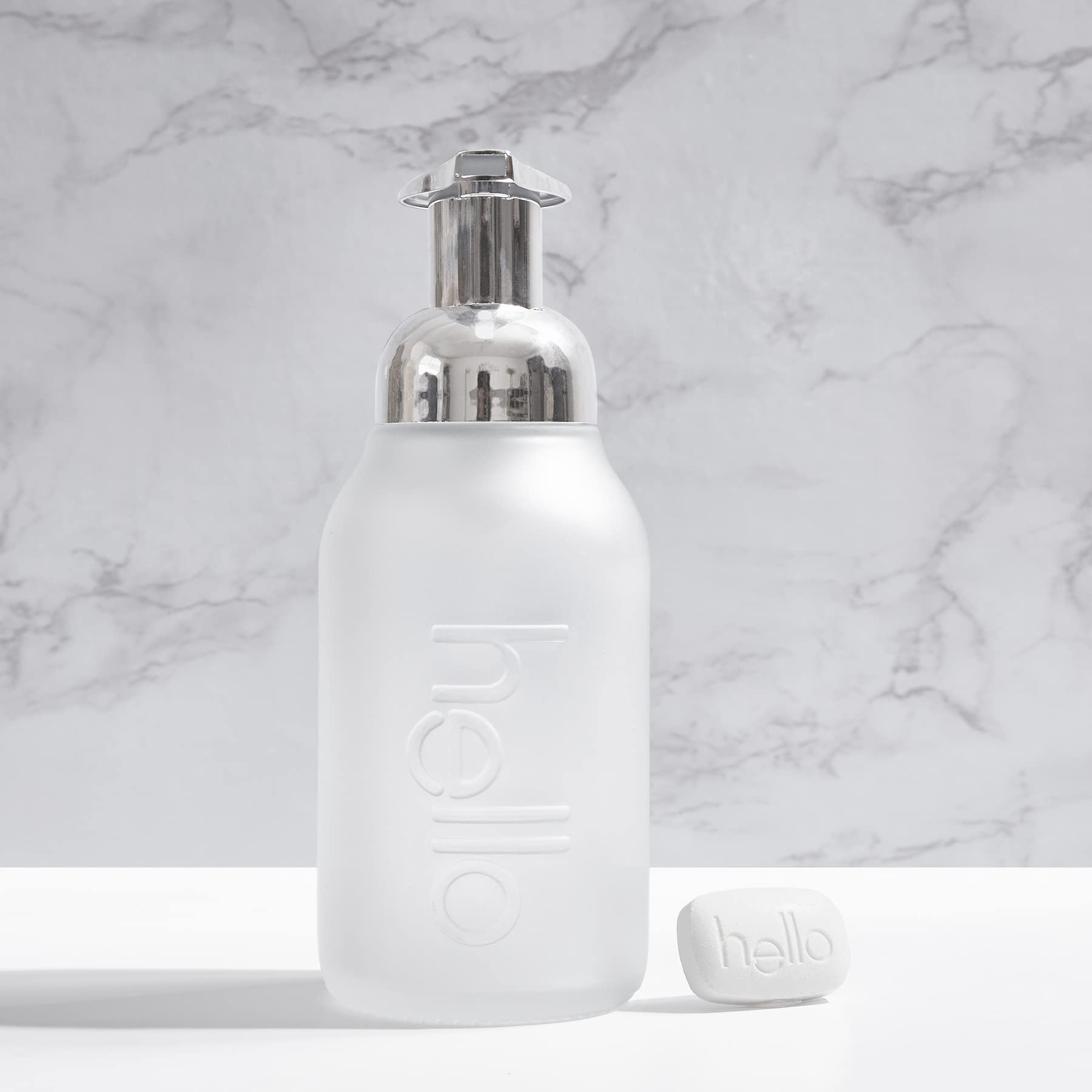 hello Foaming Hand Soap Tablet Starter Kit, Refillable Glass Bottle with 1 Aloe & Sea Minerals Foaming Hand Soap Tablet Refill Hand Soap, Eco Friendly, Plastic-Free, Vegan & SLS Free