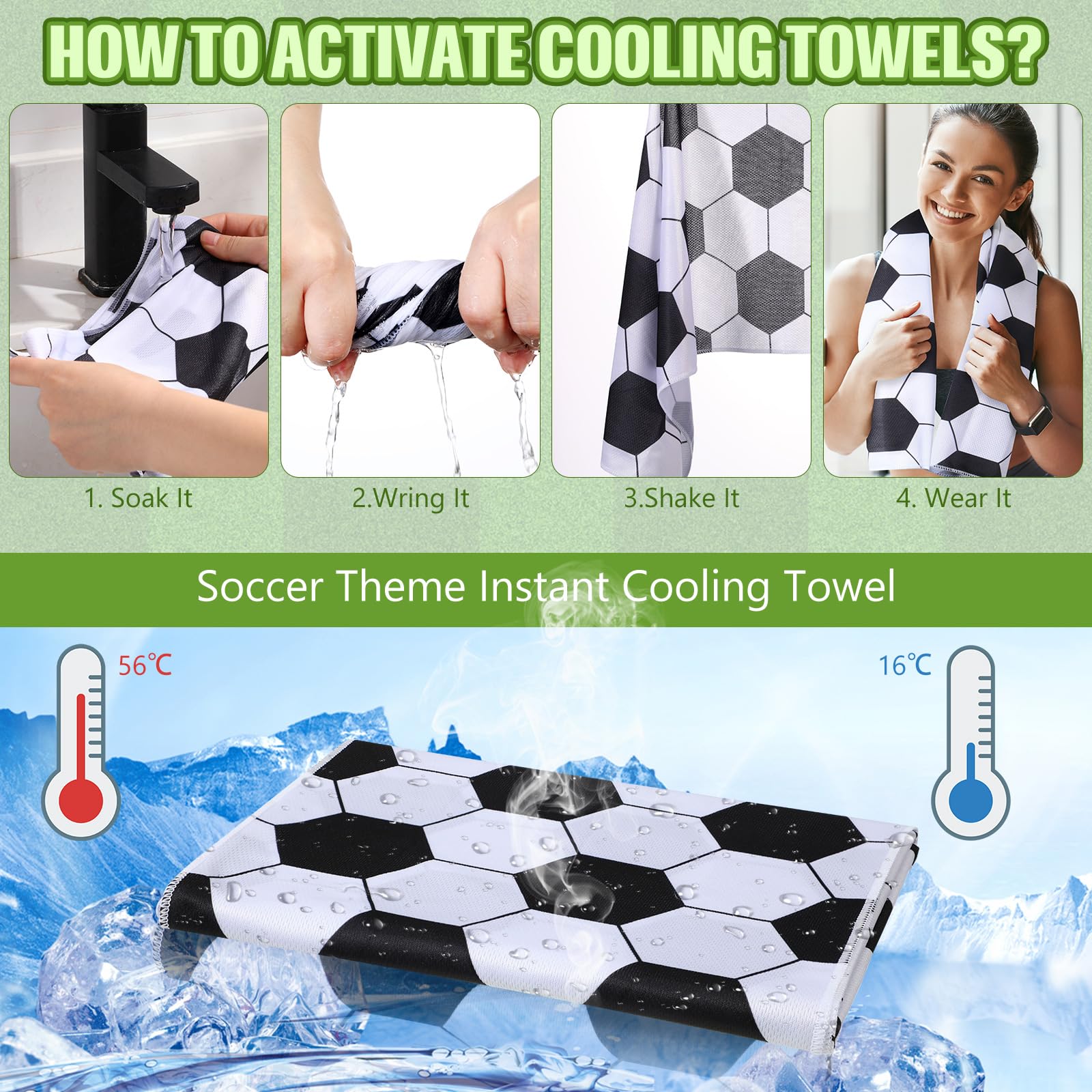 - Soccer Theme Design: imprinted with a fresh soccer pattern, our cooling towels bulk and plastic soccer water bottles bulk cater to all soccer sports enthusiasts; Add a touch of fun and sportiness to your workout or soccer routine