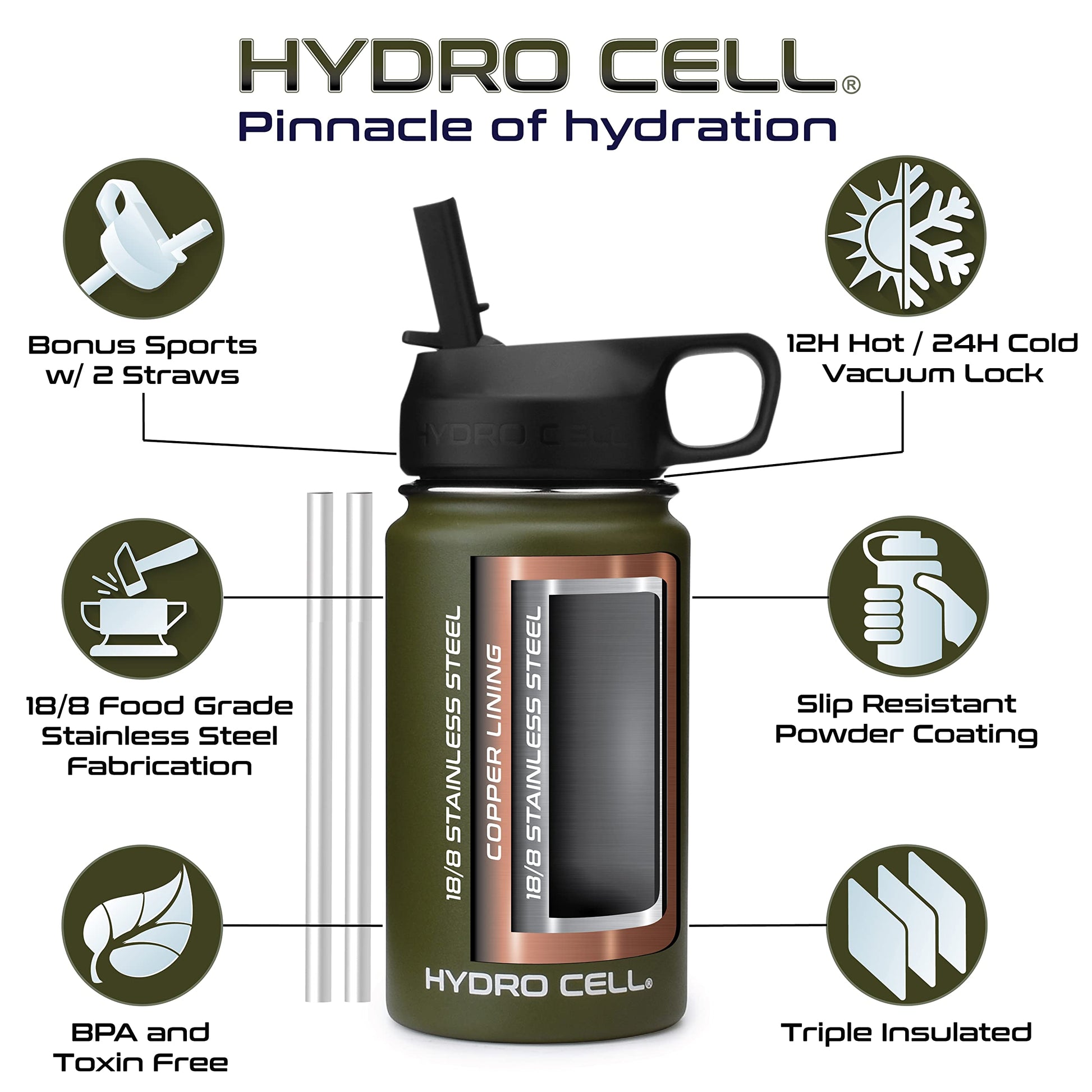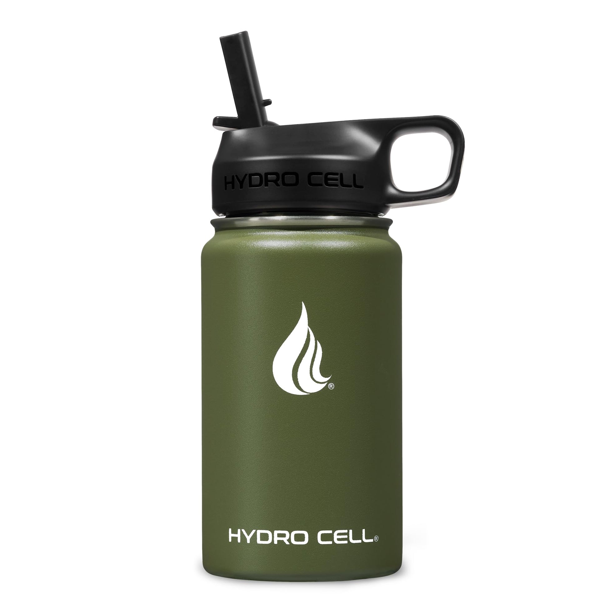 HYDRO CELL Stainless Steel Insulated Water Bottle with Straw - For Cold & Hot Drinks - Metal Vacuum Flask with Screw Cap and Modern Leakproof Sport Thermos for Kids & Adults (Army 14oz)