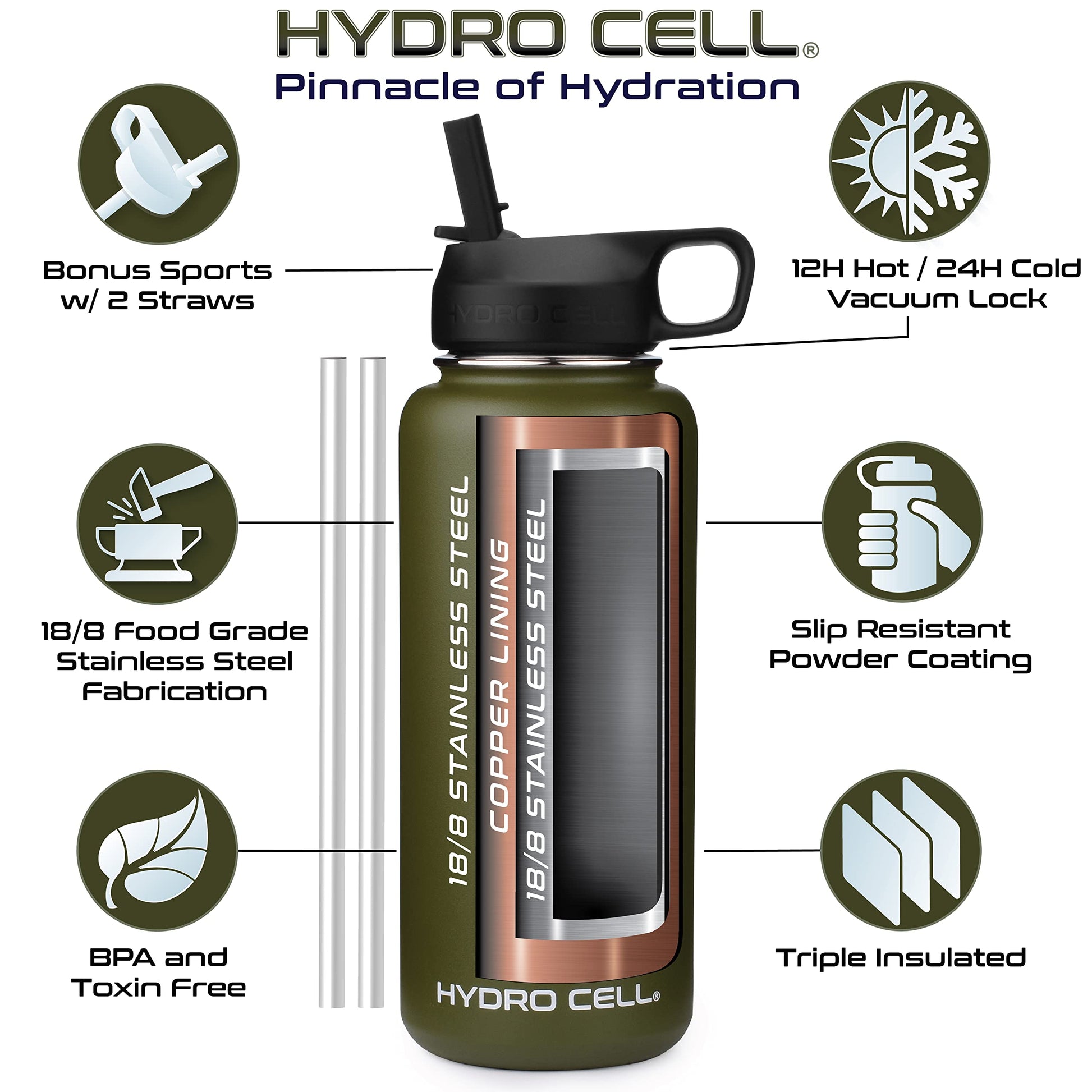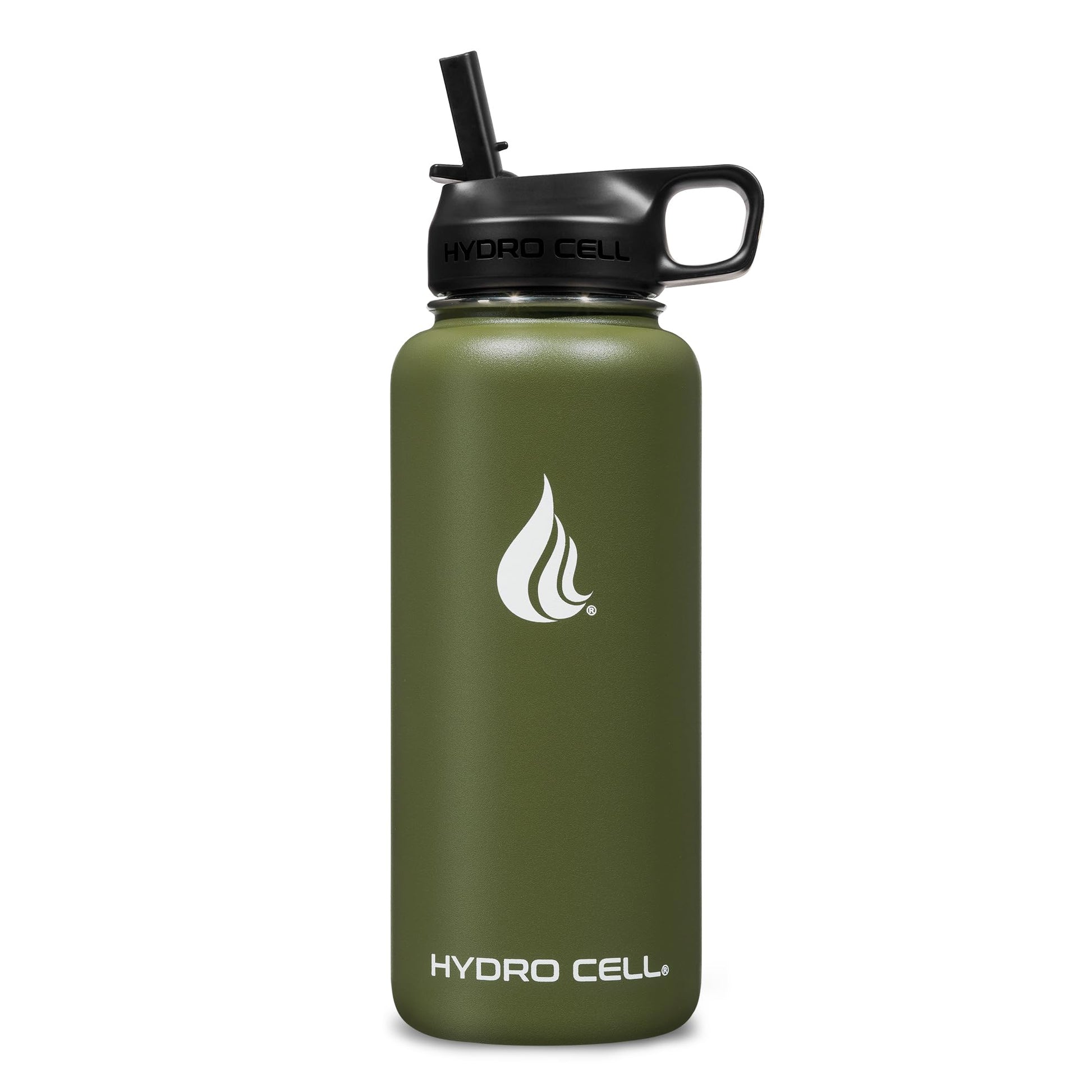 HYDRO CELL Stainless Steel Insulated Water Bottle with Straw - For Cold & Hot Drinks - Metal Vacuum Flask with Screw Cap and Modern Leakproof Sport Thermos for Kids & Adults (Army 32oz)