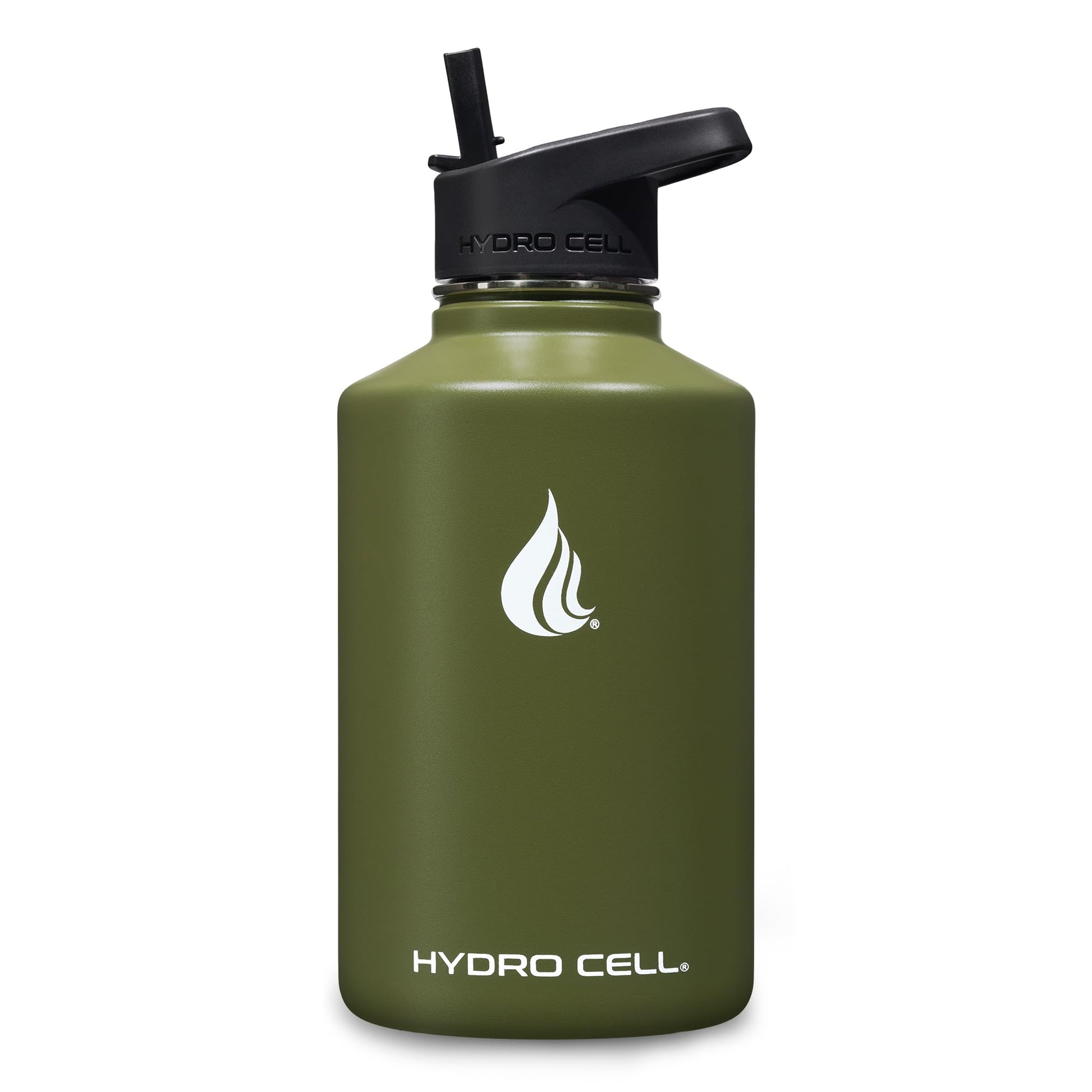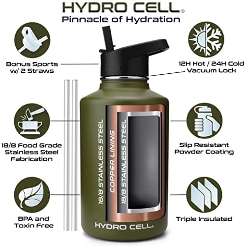 HYDRO CELL Stainless Steel Insulated Water Bottle with Straw - For Cold & Hot Drinks - Metal Vacuum Flask with Screw Cap and Modern Leakproof Sport Thermos for Kids & Adults (Army 64oz)