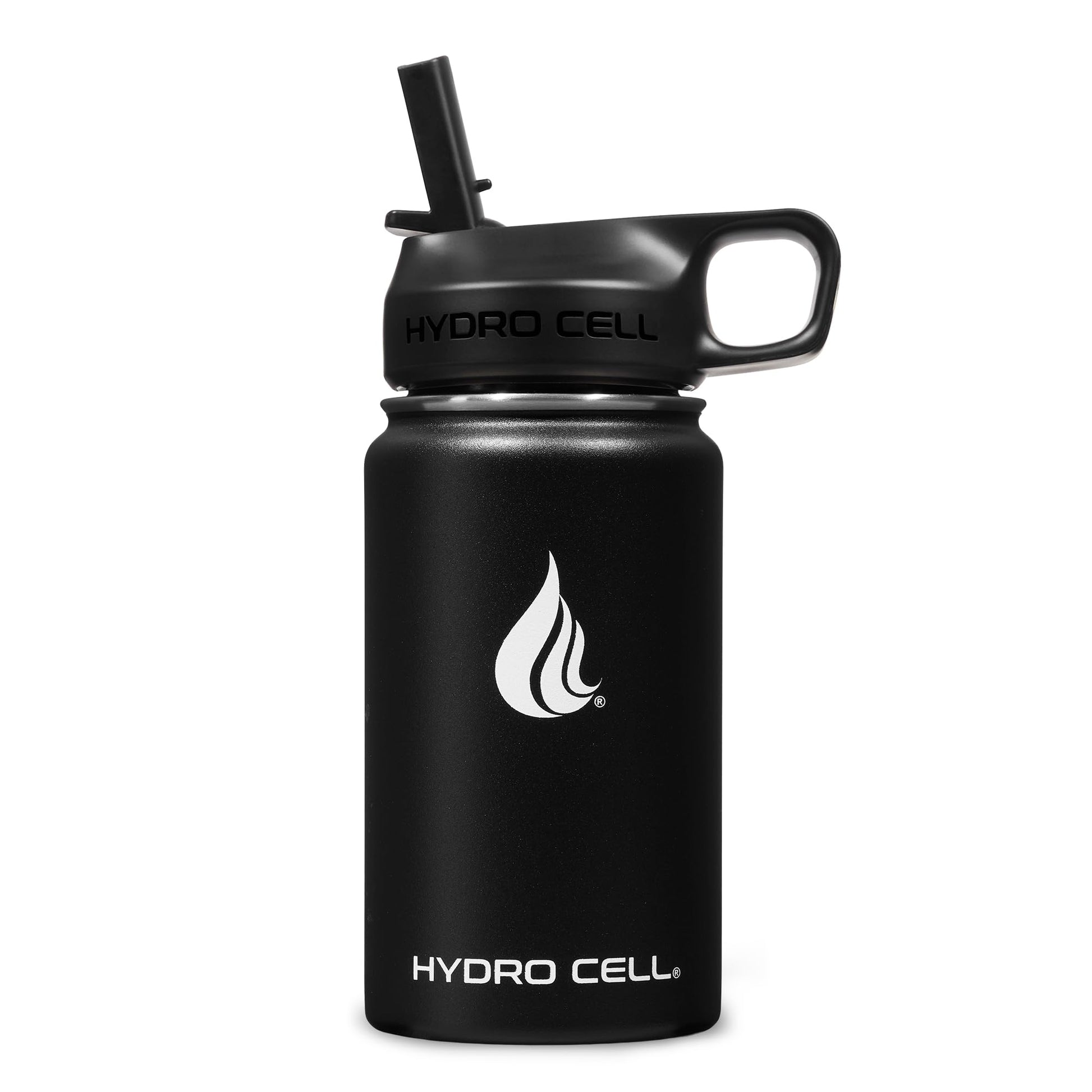 HYDRO CELL Stainless Steel Insulated Water Bottle with Straw - For Cold & Hot Drinks - Metal Vacuum Flask with Screw Cap and Modern Leakproof Sport Thermos for Kids & Adults (Black 14oz)