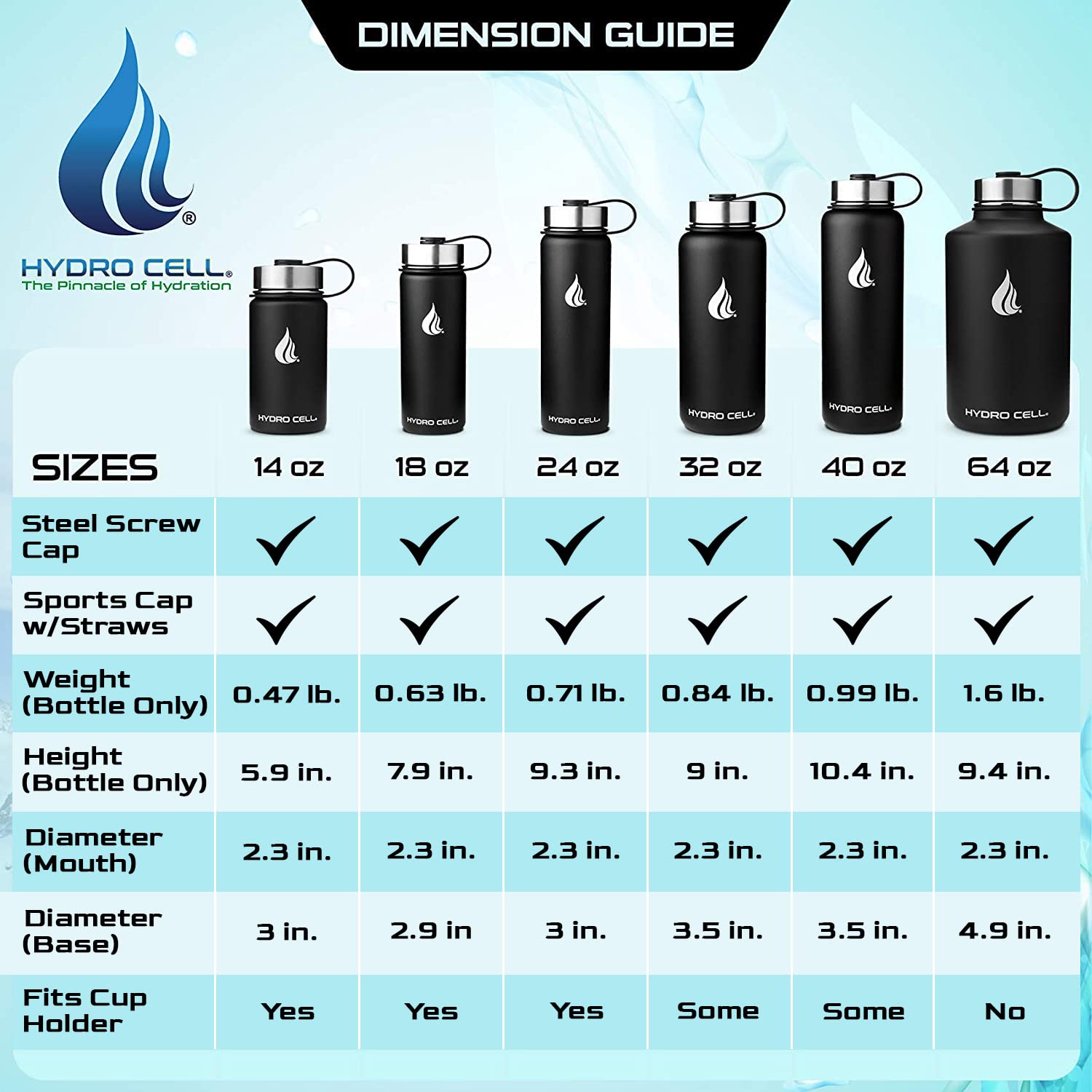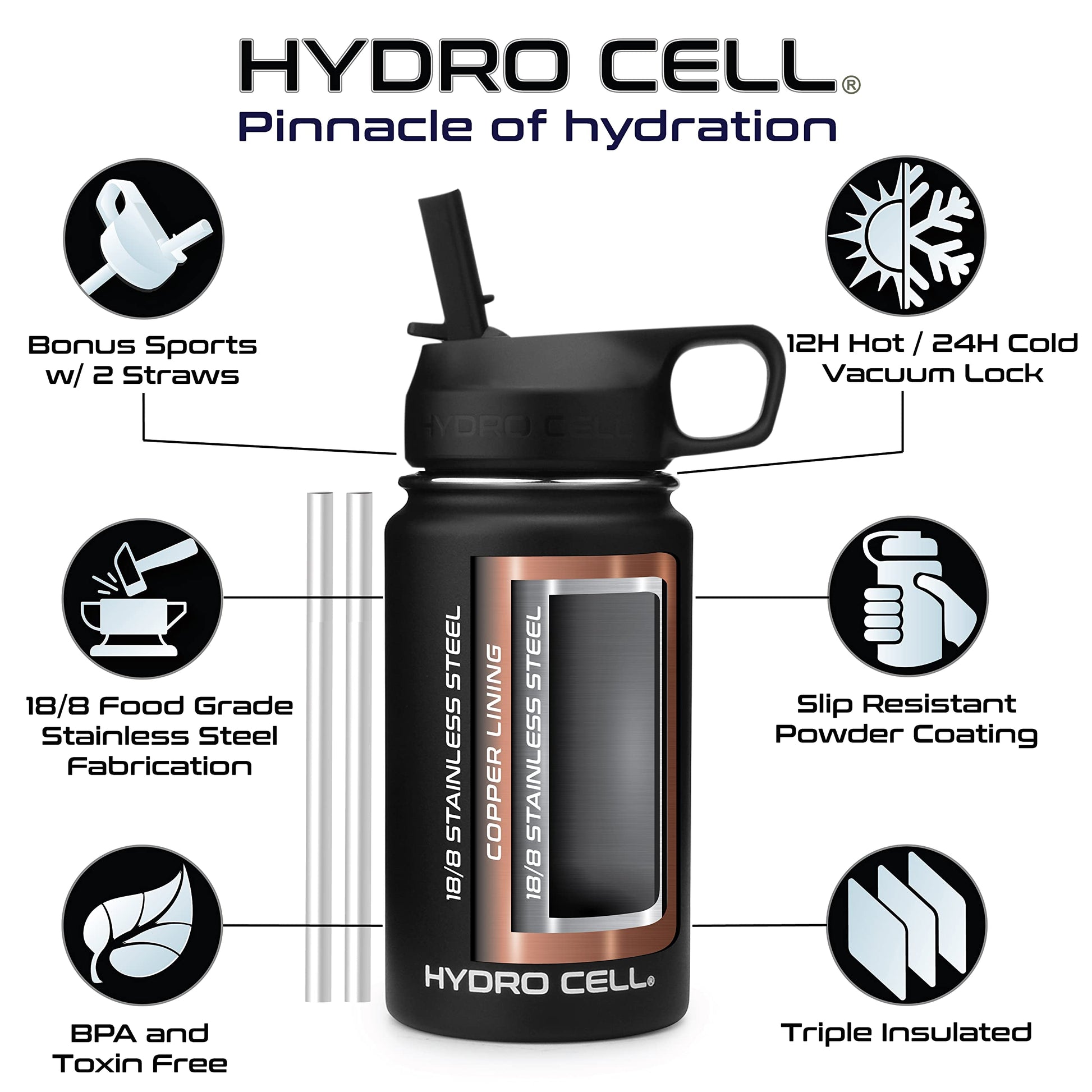 - STYLE: Purchase Includes Stainless Steel Bottle, Screw Cap (100% Airtight), Bonus Sports Cap with Straws (Cold Temp ONLY). Hydro Cell offers the largest selection of matching Paracord Handles, Bottle Boots, and Color Replacement Caps: Sold Separate, Linked Below. Customize your Hydro.