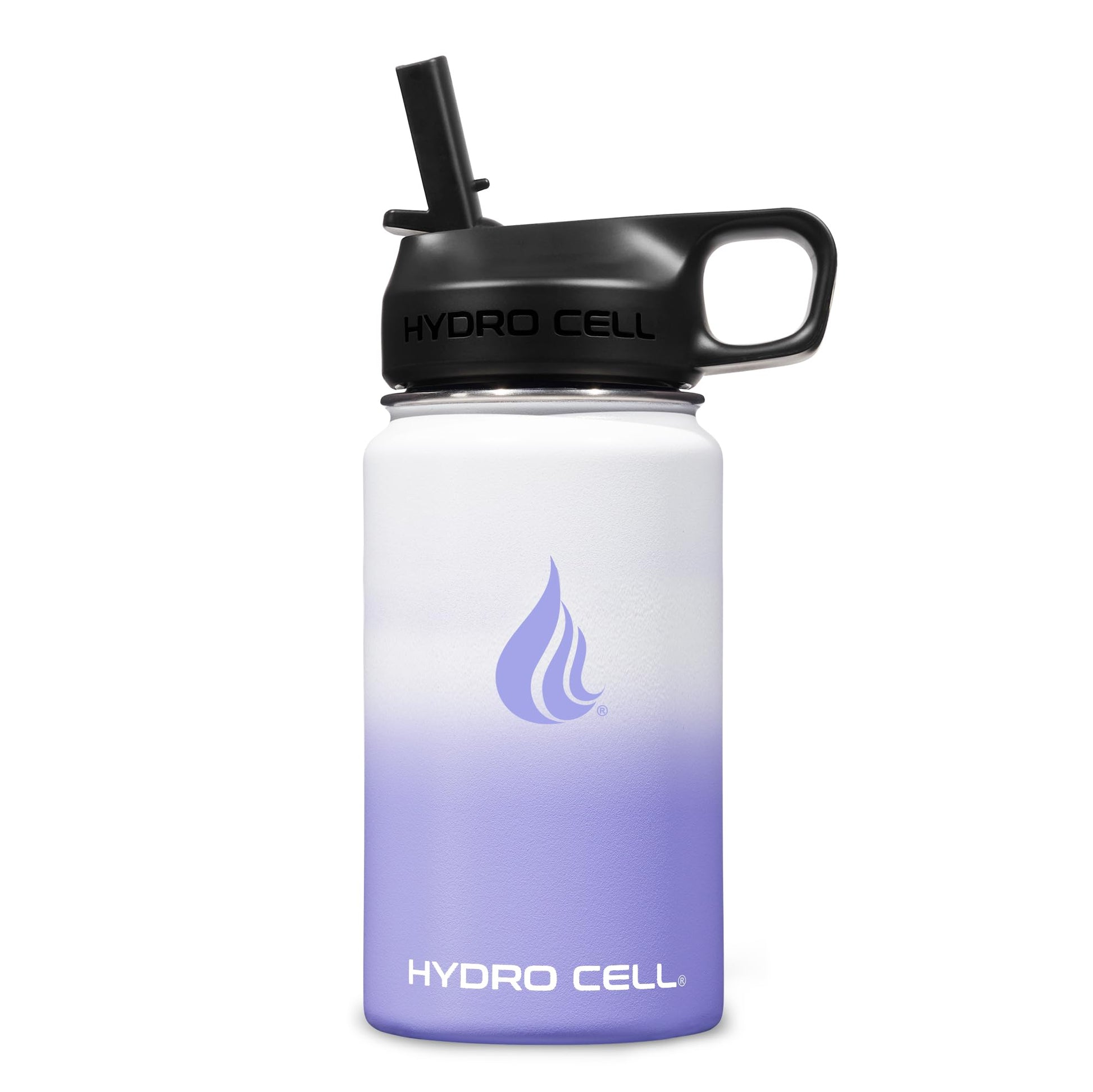 HYDRO CELL Stainless Steel Insulated Water Bottle with Straw - For Cold & Hot Drinks - Metal Vacuum Flask with Screw Cap and Modern Leakproof Sport Thermos for Kids & Adults (Lavender/White 14oz)