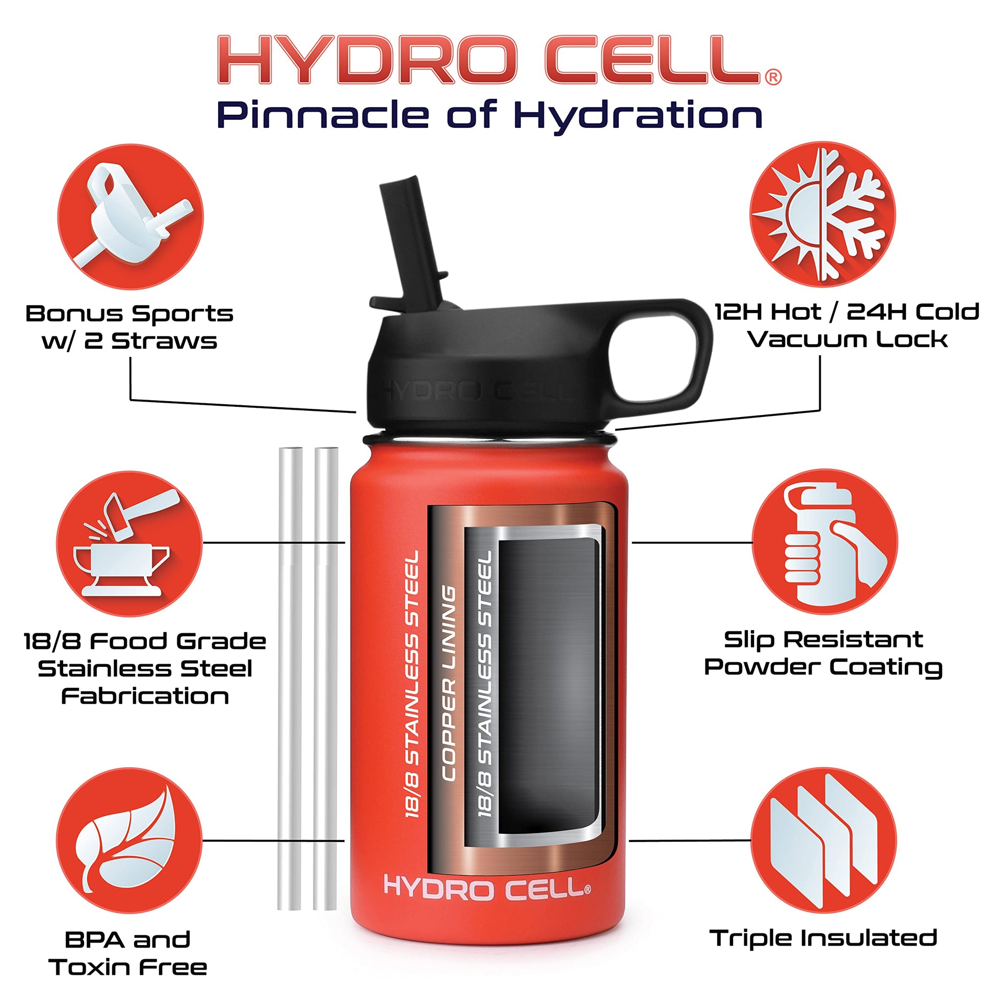 - STYLE: Purchase Includes Stainless Steel Bottle, Screw Cap (100% Airtight), Bonus Sports Cap with Straws (Cold Temp ONLY). Hydro Cell offers the largest selection of matching Paracord Handles, Bottle Boots, and Color Replacement Caps: Sold Separate, Linked Below. Customize your Hydro.