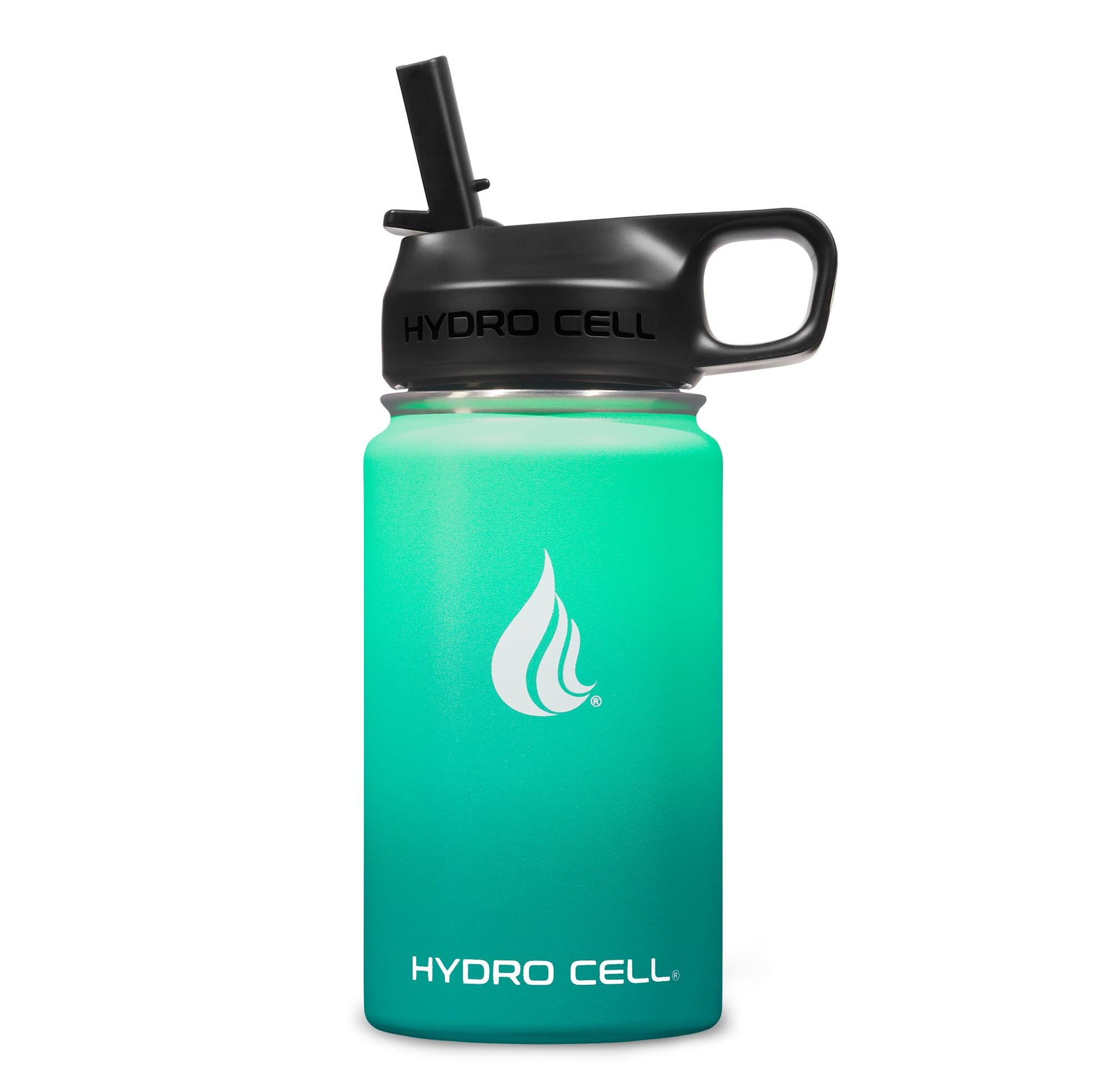 HYDRO CELL Stainless Steel Insulated Water Bottle with Straw - For Cold & Hot Drinks - Metal Vacuum Flask with Screw Cap and Modern Leakproof Sport Thermos for Kids & Adults (Mint/Green 14oz)