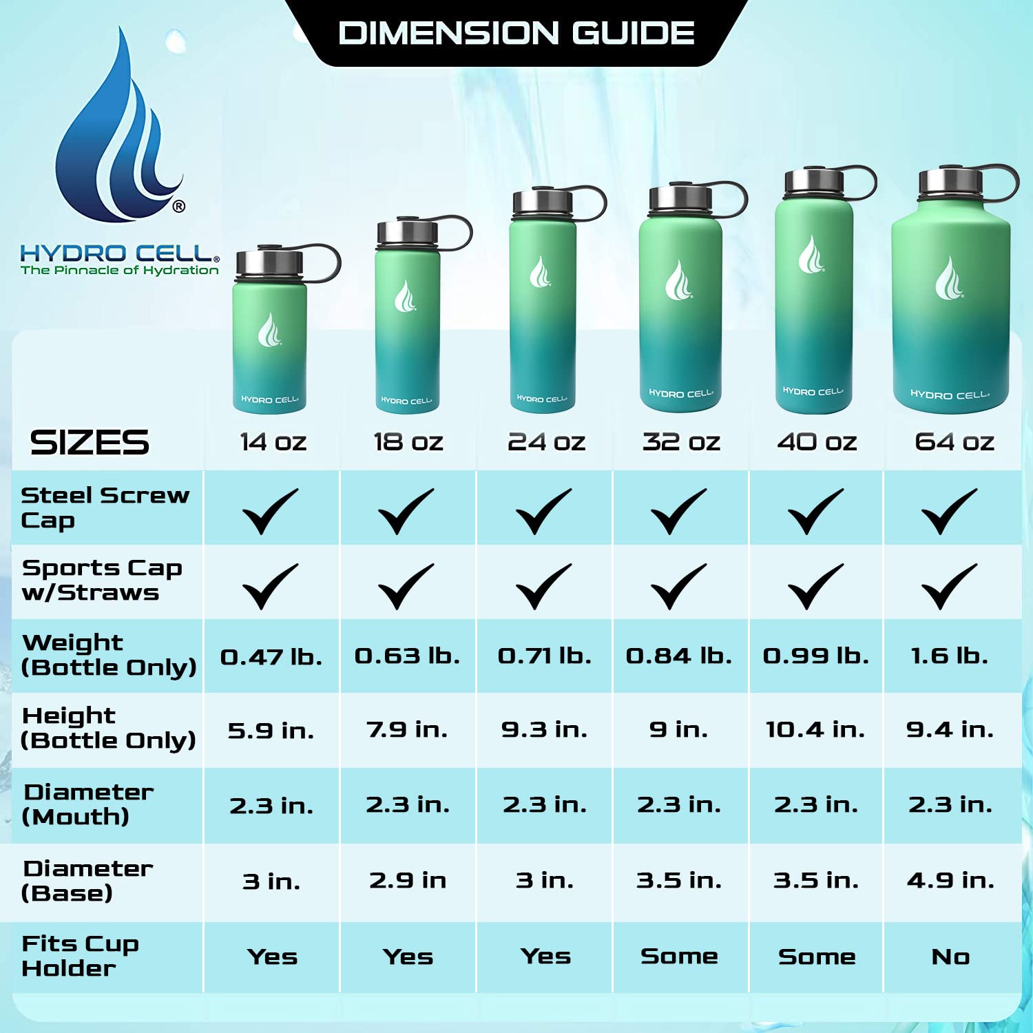 - STYLE: Purchase Includes Stainless Steel Bottle, Screw Cap (100% Airtight), Bonus Sports Cap with Straws (Cold Temp ONLY). Hydro Cell offers the largest selection of matching Paracord Handles, Bottle Boots, and Color Replacement Caps: Sold Separate, Linked Below. Customize your Hydro.