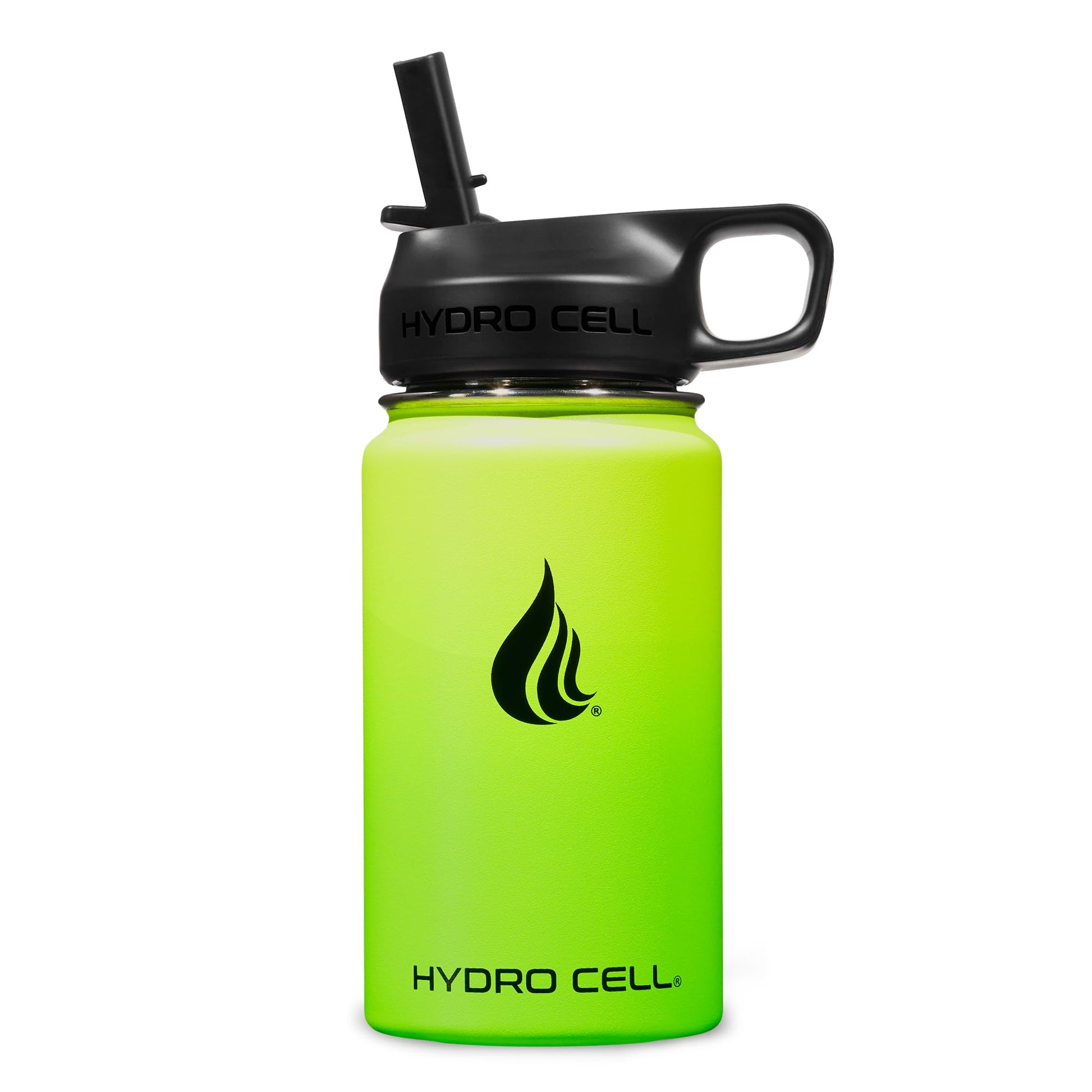 HYDRO CELL Stainless Steel Insulated Water Bottle with Straw - For Cold & Hot Drinks - Metal Vacuum Flask with Screw Cap and Modern Leakproof Sport Thermos for Kids & Adults (Neon 14oz)