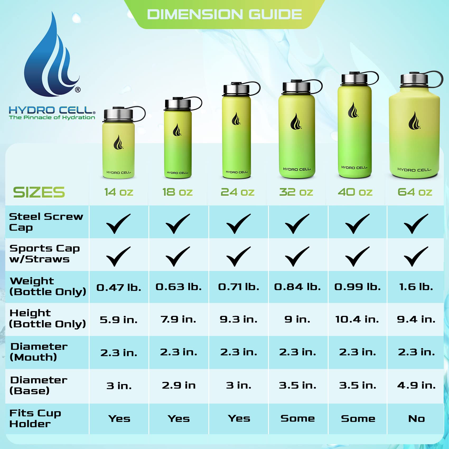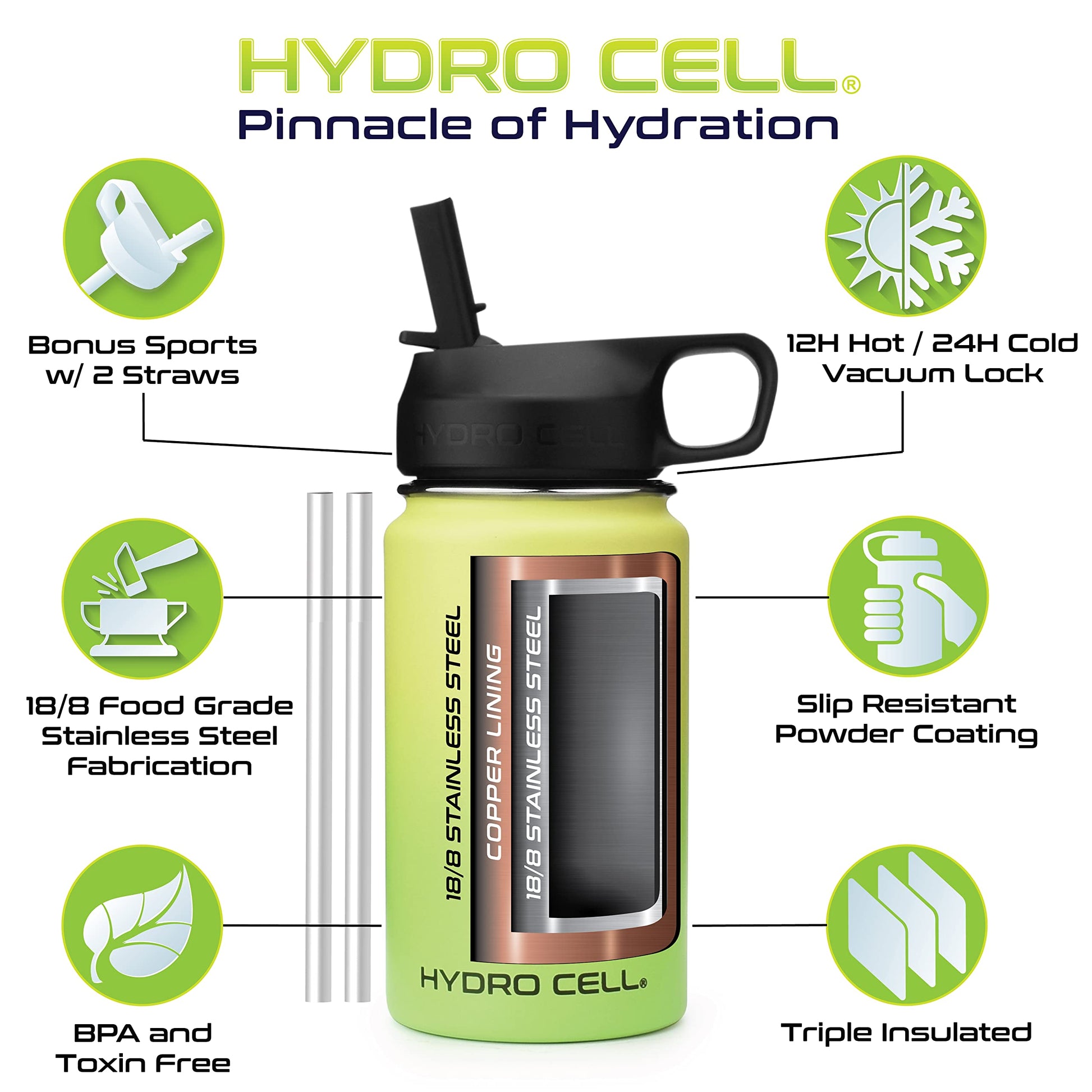 - STYLE: Purchase Includes Stainless Steel Bottle, Screw Cap (100% Airtight), Bonus Sports Cap with Straws (Cold Temp ONLY). Hydro Cell offers the largest selection of matching Paracord Handles, Bottle Boots, and Color Replacement Caps: Sold Separate, Linked Below. Customize your Hydro.