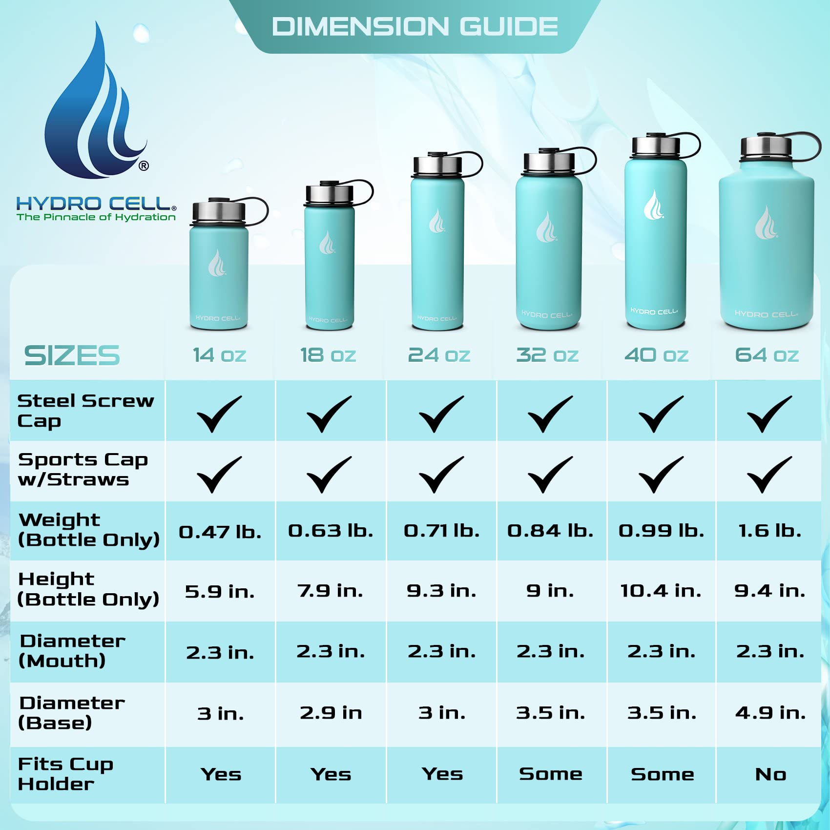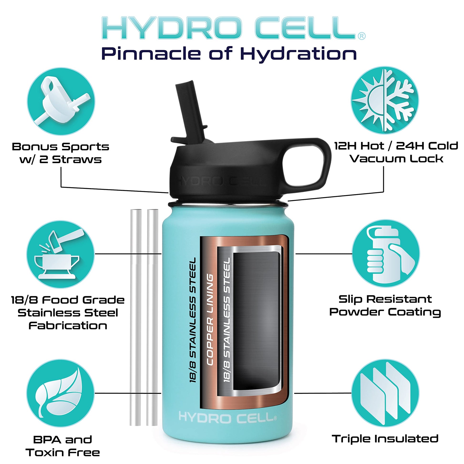 - STYLE: Purchase Includes Stainless Steel Bottle, Screw Cap (100% Airtight), Bonus Sports Cap with Straws (Cold Temp ONLY). Hydro Cell offers the largest selection of matching Paracord Handles, Bottle Boots, and Color Replacement Caps: Sold Separate, Linked Below. Customize your Hydro.