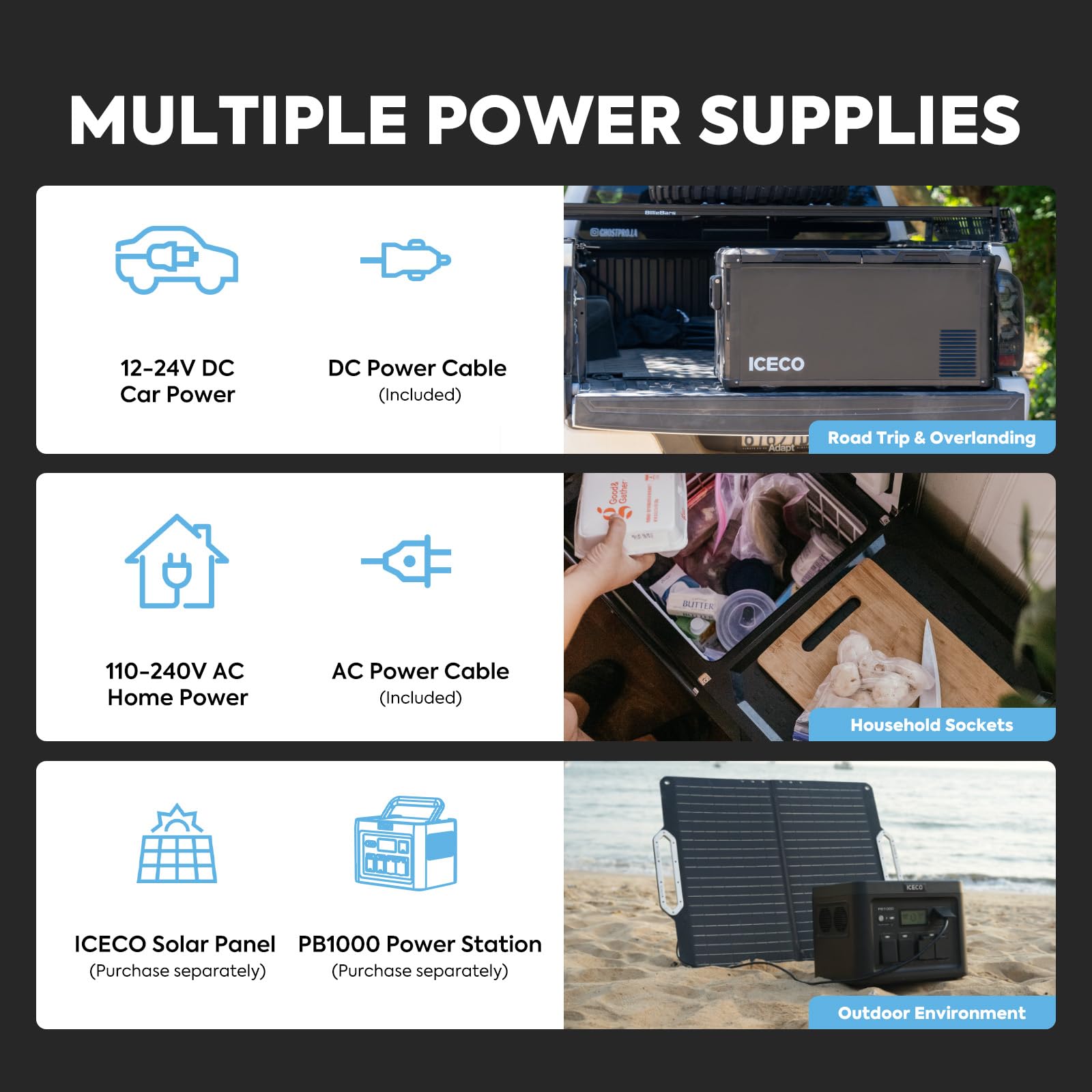 - Power Supply - Made of monocrystalline silicon and a variety of materials, ICECO 80W camping solar panels achieve 98% light transmission and can convert more solar energy into usable electricity. This Magnetic Battery has multi-function outputs to power different devices effectively, making your life more convenient and joyful.