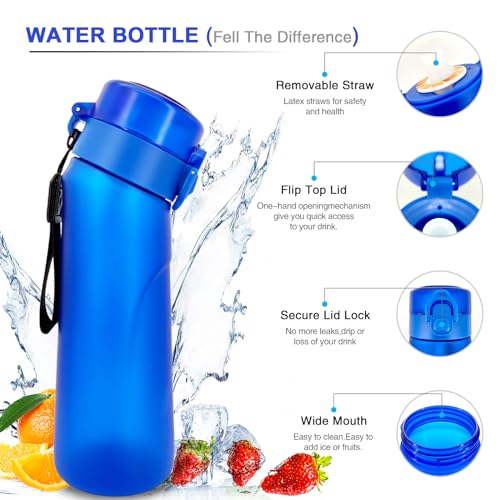 Jcxuot Air Water Bottle with Flavor Pods, 750ML Scent Water Cup with Flavor Pods Box,0% Sugar Fragrance Water Bottle Suitable for Outdoor Sports (Blue+1pods)