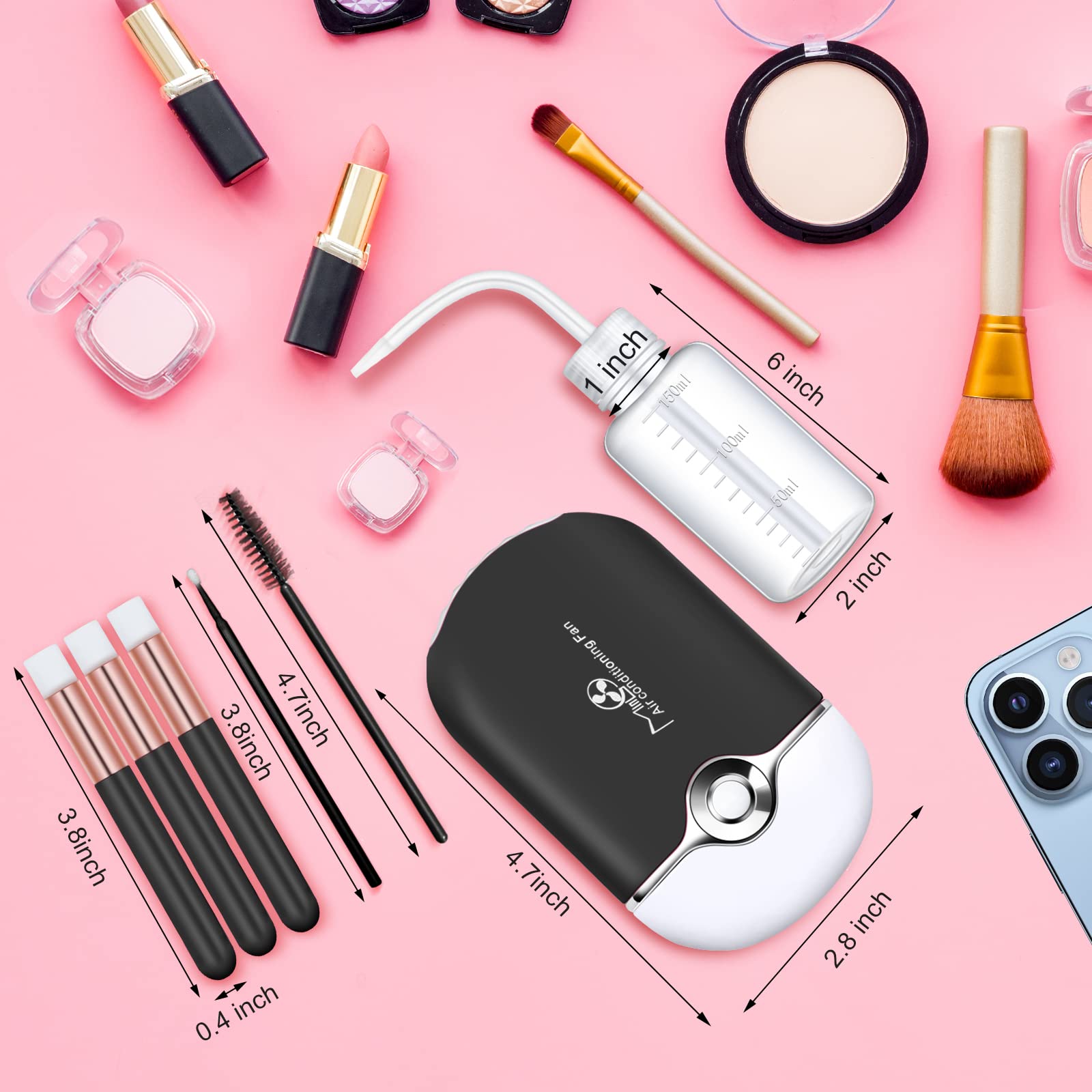 kioooki 105 Pcs Lash Fan Kit, USB Mini Portable Fans Rechargeable Electric Handheld Air Conditioning Lash Shampoo Brushes Nose Blackhead Facial Cleaning Brush Plastic Wash Bottle
