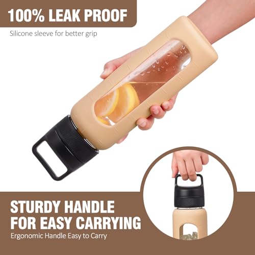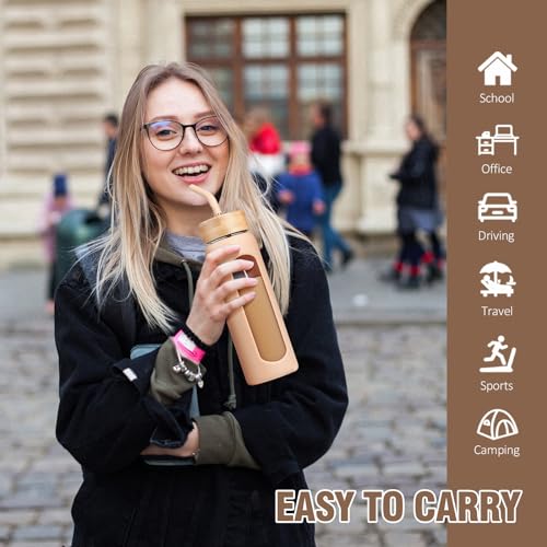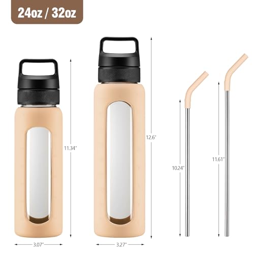 - 24 OZ AND 32 OZ CAPACITY FOR OPTIONS - We have 2 sizes for those glass drinking bottles. The 32 oz glass water bottles are perfect for those who require a larger volume of water throughout the day. With this 32 oz bottle(1 liter water bottle), you can stay hydrated without the need for frequent refills. For those seeking a slightly smaller option, we offer the 24 oz glass water bottle, which is ideal for individuals who prefer a more compact and lightweight bottle.