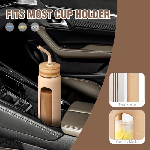 Details: Kodrine 24 oz Glass Water Bottles 32 oz, 1 Liter Water Bottle with Straw, Clear Water Bottle with Silicone Sleeve Time Marker, Wide Mouth Water Bottle 2 Lids