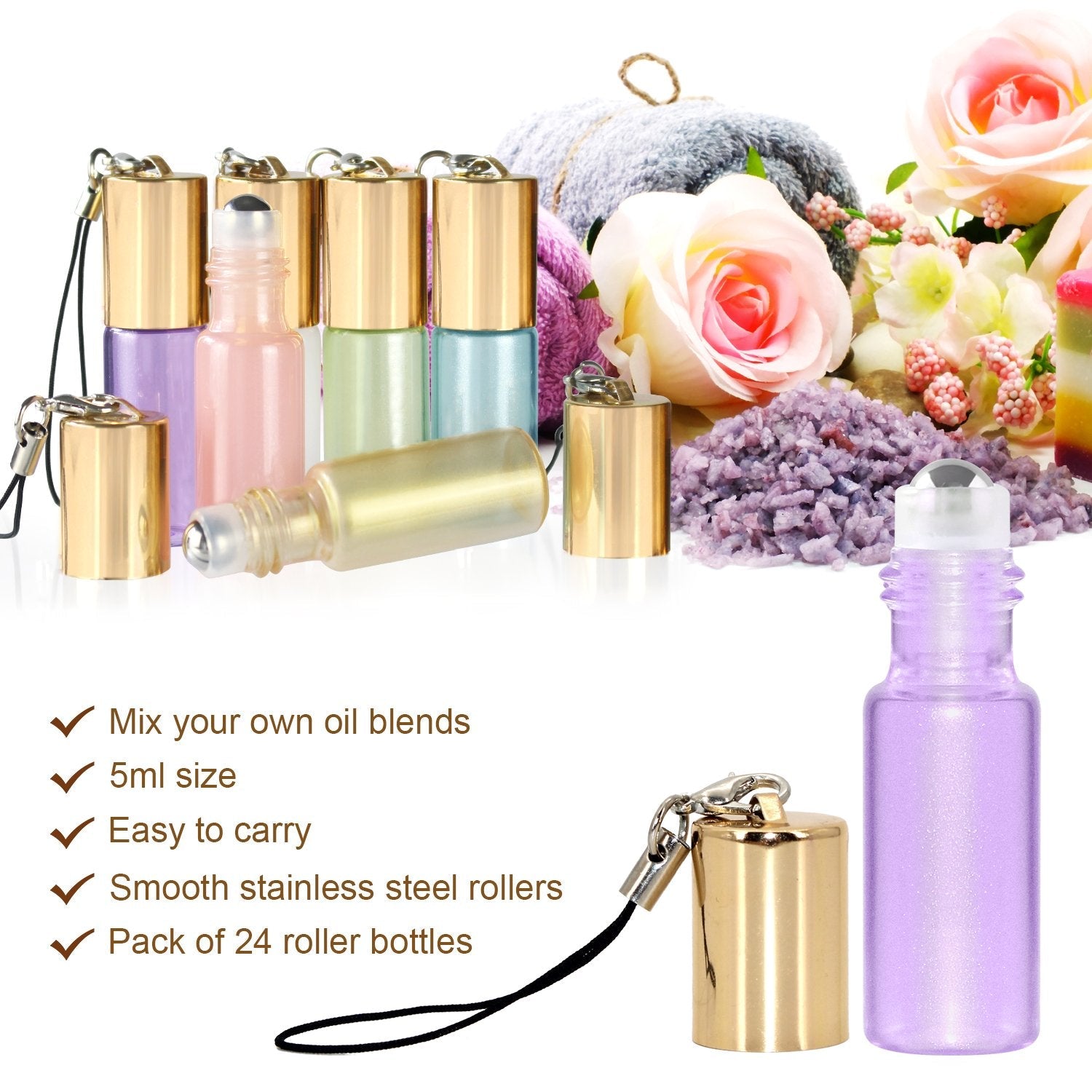 - Fashionable And Actual Glass Bottle: Pack of 24 pearl colored glass essential oil roller bottles with stainless steel roller balls, which is durable and fashionable for essential oil & other skincare applications