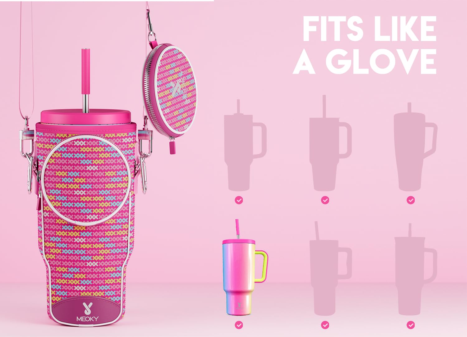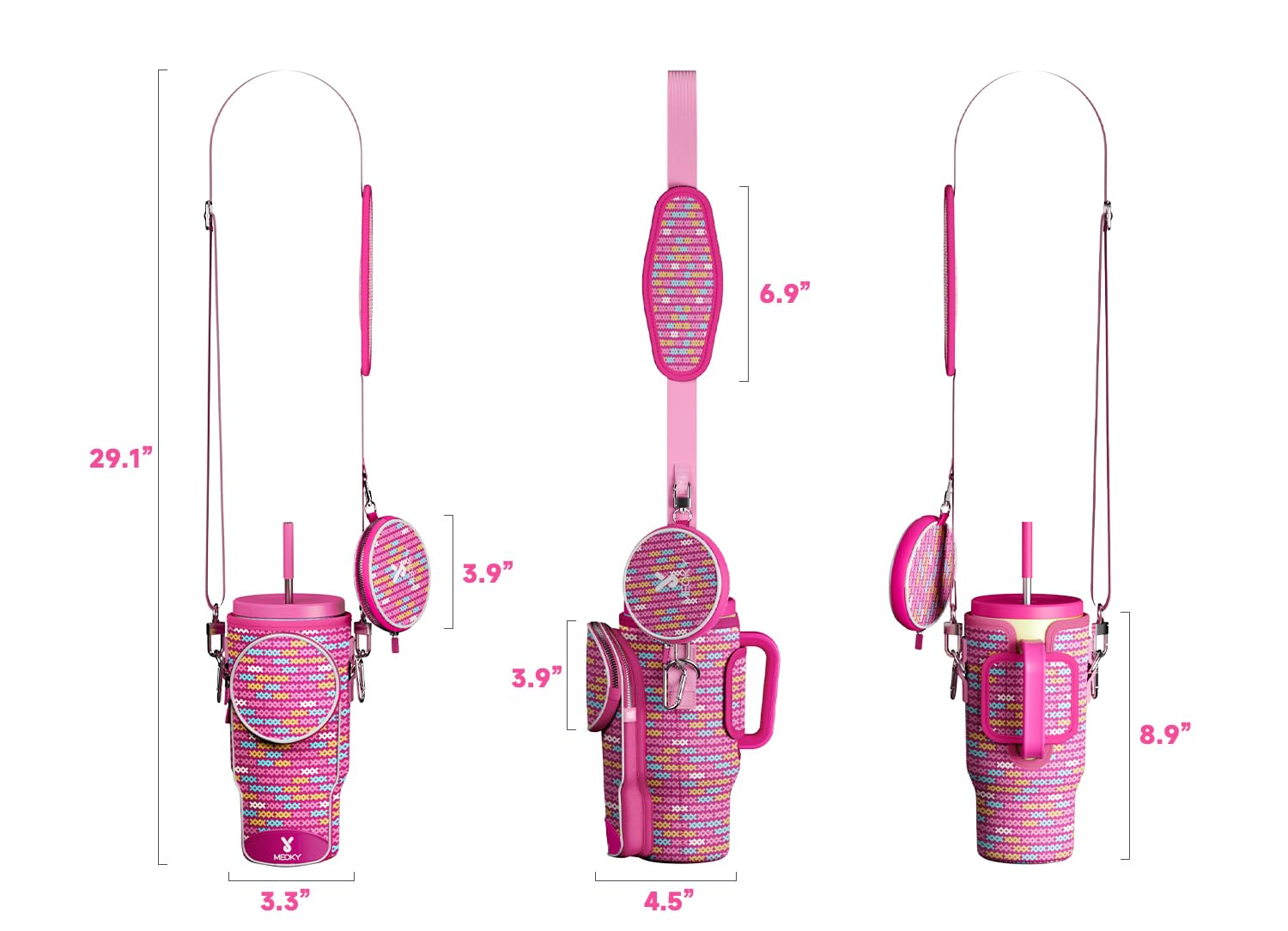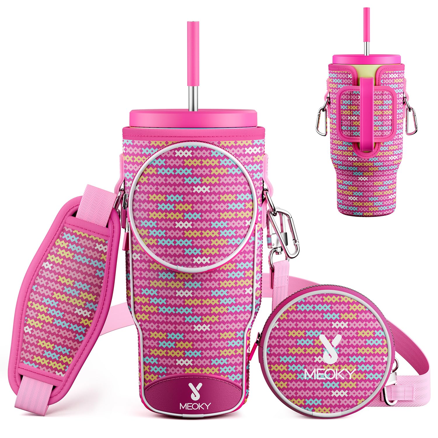 - PREMIUM NEOPRENE. Made of durable neoprene with strong stitching and hardware buckles, Meoky waterproof and flexible tumbler bag protects your tumbler from dents and scratches.