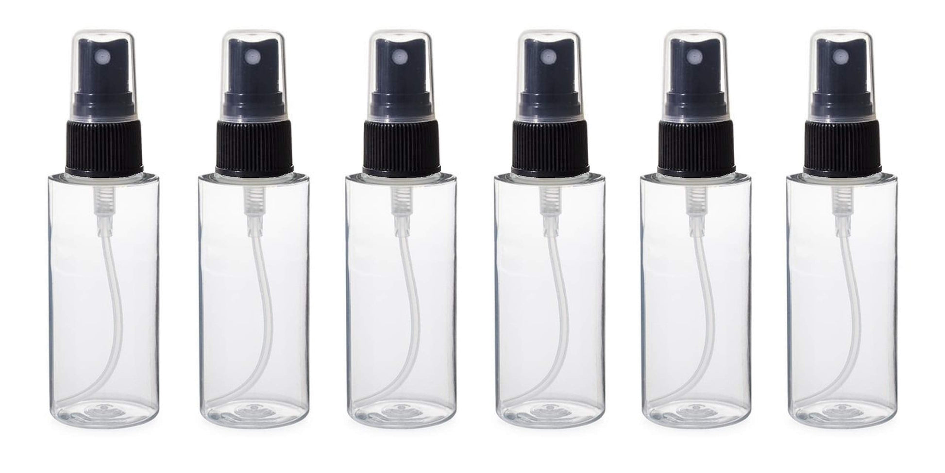 Details: North Mountain Supply 2 Ounce Refillable Empty Plastic Bottle With Fine Mist Spray Nozzle - Pack of 6. Travel size fine mistspray bottles with transparent protector caps over spray heads to prevent drips or leaks. The capacity is 2oz (60ml), great for sanitizing, travel, cleaning, gardening, and skin care. These tiny spray bottles are good for filling perfume, cologne, alcohol, eyeglass cleaner, water, mouthwash, hair sprayer, and much more! We warrant our products in the event that they arrive damaged or defective - Covered under our 30 day hassle free replacement program!