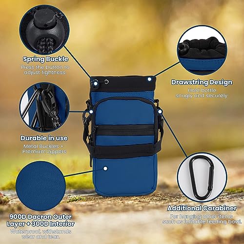 Nuovoware Water Bottle Carrier, 40oz Bottle Carrier Sports Water Bottle Holder with Adjustable Shoulder Strap, 2 Pockets Flask Sling Bag Drawstring Pouch for Climbing Hiking Walking, Blue