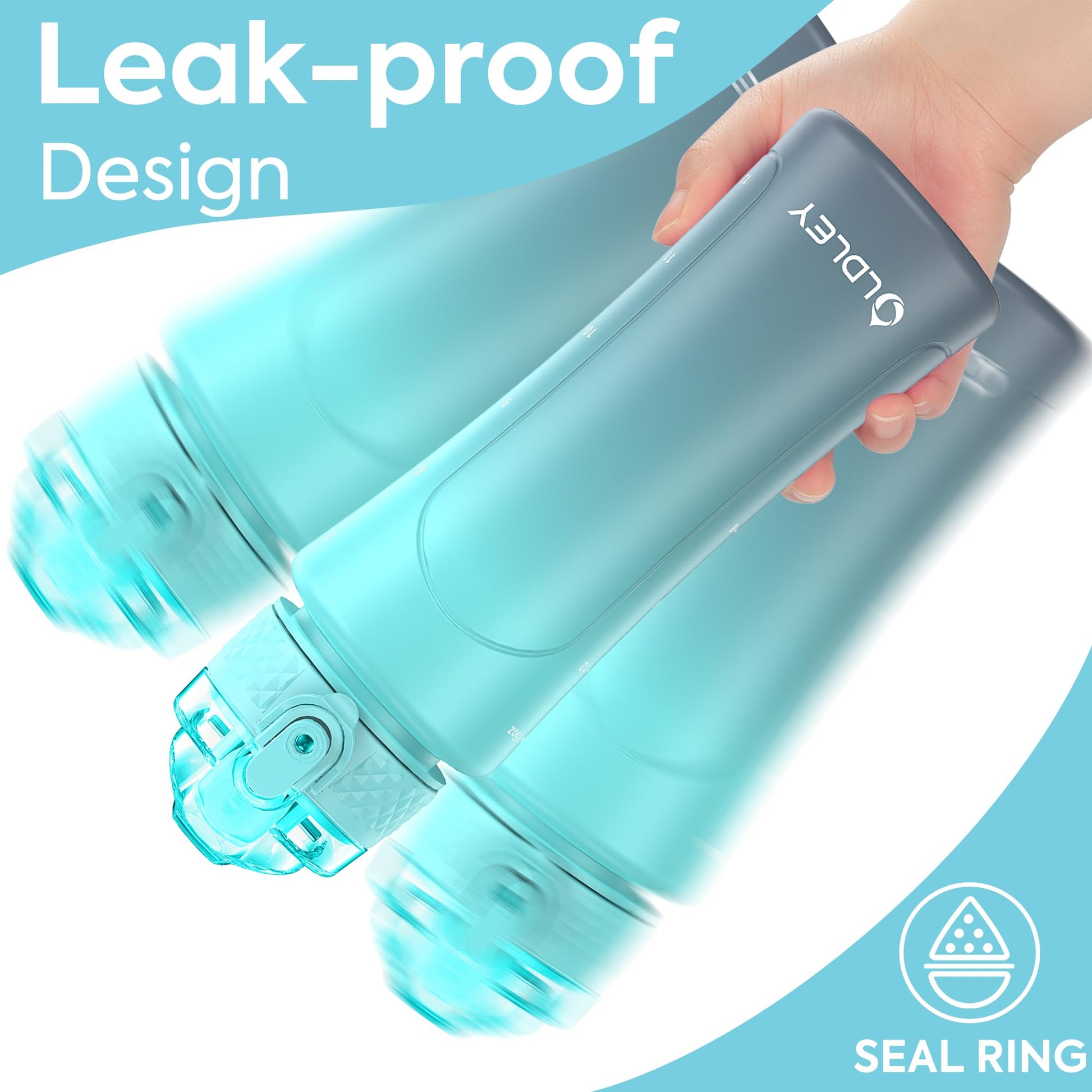 OLDLEY Kids Water Bottle with Straw 15 oz BPA-Free Leak-Proof Motivational Water Bottles with Time Marker for School Sports Travel Gym, Easy to Use for Girls Goys, 1 Straw Lid, Blue Grey