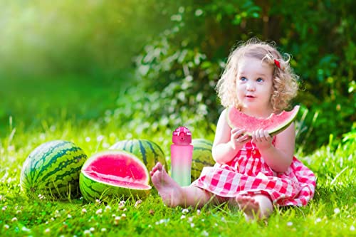 OLDLEY Kids Water Bottle with Straw 15 oz BPA-Free Leak-Proof Motivational Water Bottles with Time Marker for School Sports Travel Gym, Easy to Use for Girls Goys, 1 Straw Lid, Rose-Red Green