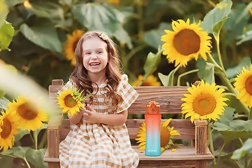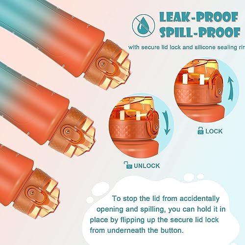 OLDLEY Kids Water Bottle with Straw 15 oz Motivational Water Bottles with Time Marker for School Travel, Spill Proof Sports Water Bottle for Girls Boys,1 Straw Lid,Orange/Green