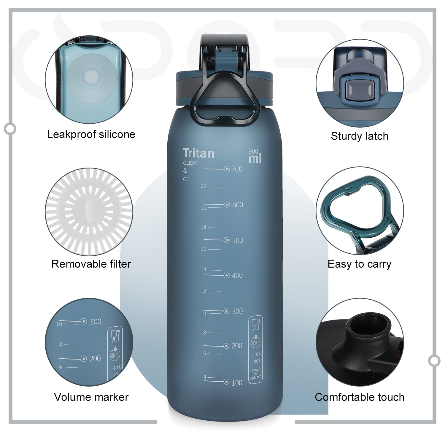 Opard 30oz Sports Water Bottle with Leak Proof Flip Top Lid BPA Free Tritan Reusable Plastic for Gym and Outdoor
